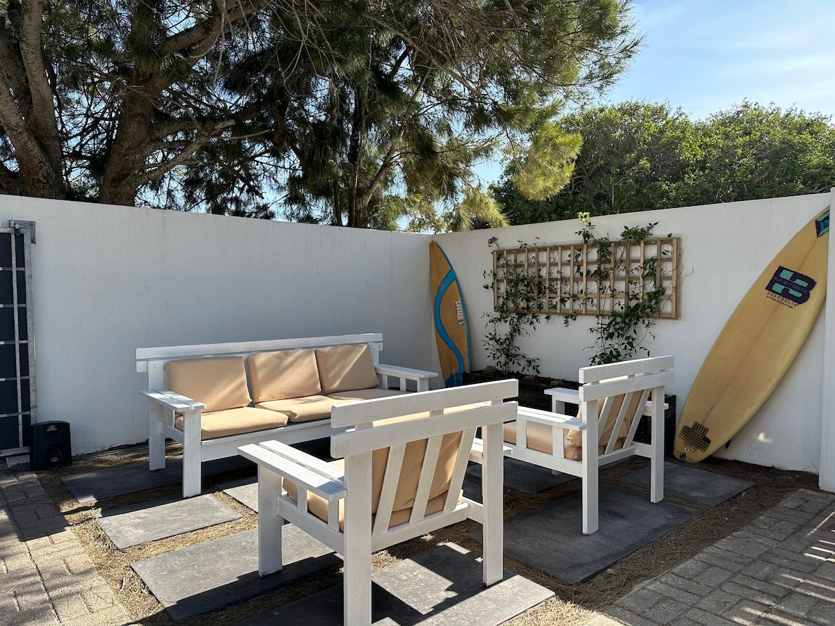 Prostorno predelano stanovanje v mirnem predelu, 3 minute hoje do plaže. ENO dvojno predelano stanovanje odprtega tipa z zakonsko posteljo (Queen) in drugo zakonsko posteljo s kopalnico. Idealno za par, ki si ga delita družina s tremi ali dvema samskima osebama. Popolna kuhinja z novimi sodobnimi napravami - hladilnik/zamrzovalnik, mikrovalovna pečica, opekač kruha,cvrtnik, električna ponev in opekač kruha. Ni televizije Zasebni vhod z zunanjim prostorom. Weber braai in dobavljen na zahtevo. Kajenje je prepovedano V prenočišču ni rakov, ki bi jih bilo treba skuhati