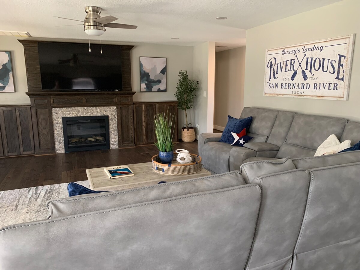 Come relax on the San Bernard River in this spacious barndominium set on the river bend. Bring your boat or pwc and enjoy some water sports or relax and fish on the large private pier. Perfect spot for fishing, wake-surfing, and skiing. The Hot Spring Grandee hot tub is perfect for relaxing and seats 6. High speed fiber WiFi, 75” and 65” smart tv will help keep you entertained when not enjoying the tranquility outside. It’s always a good time on the river. Only 9.4 miles to Phillips 66 Sweeny.