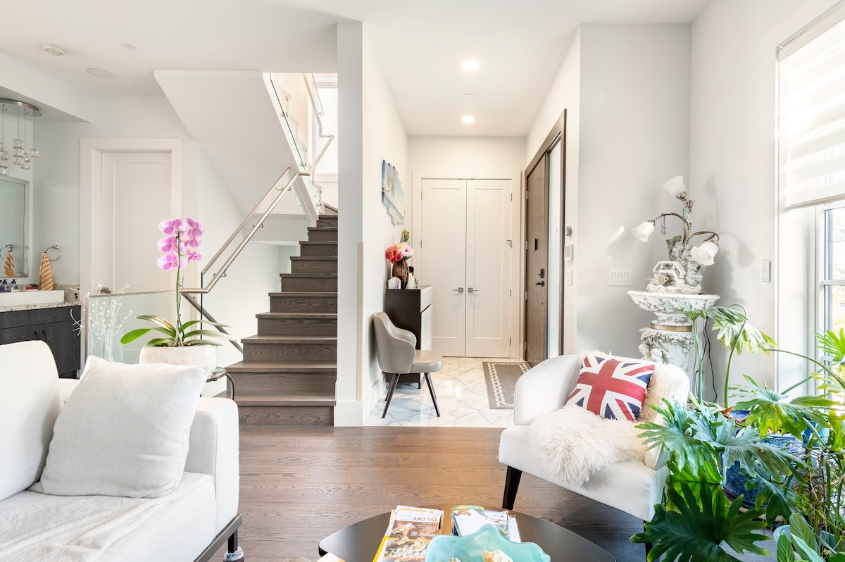 Obiščite lokalno tržnico in postrežite domačo pojedino pod sodobnim vzdušjem na lestenci v tem svetlo polnem družinskem domu. Vpijte sonce skozi prvotna vodilna okna, nato pa se prepustite prijetni mehurčkasti kopel ob mesečini. Celotno glavno nadstropje in zgornje nadstropje hiše lahko uporabite, ko rezervirate naše prenočišče. Imate popolno uporabo terase z žarom, vrhunsko kuhinjo z najboljšimi aparati, vključno s štedilnikom Viking, čudovito jedilnico in dnevno sobo s plinskim kaminom in pametno televizijo ter brlogom v glavnem nadstropju z drugim pametnim televizorjem . Zgoraj je spalnica in 2 kopalnici. Nekdo, ki ni na kraju samem, bo na voljo po potrebi Hiša leži na drevesni ulici v mirni, družinski soseski, le eno ulico stran od javnega prevoza in kratek sprehod od tržnice z živili, kave Starbucks, lokalne vinoteke in slastne slaščičarne. Parkirišče, če imate avto, je tik pred hišo v naši mirni ulici. Če potrebujete javni prevoz, smo 1 ulico hoje do javnega prevoza in kratek sprehod do tržnice s hrano, kave Starbucks, lokalne vinoteke in okusne sladoledarne.