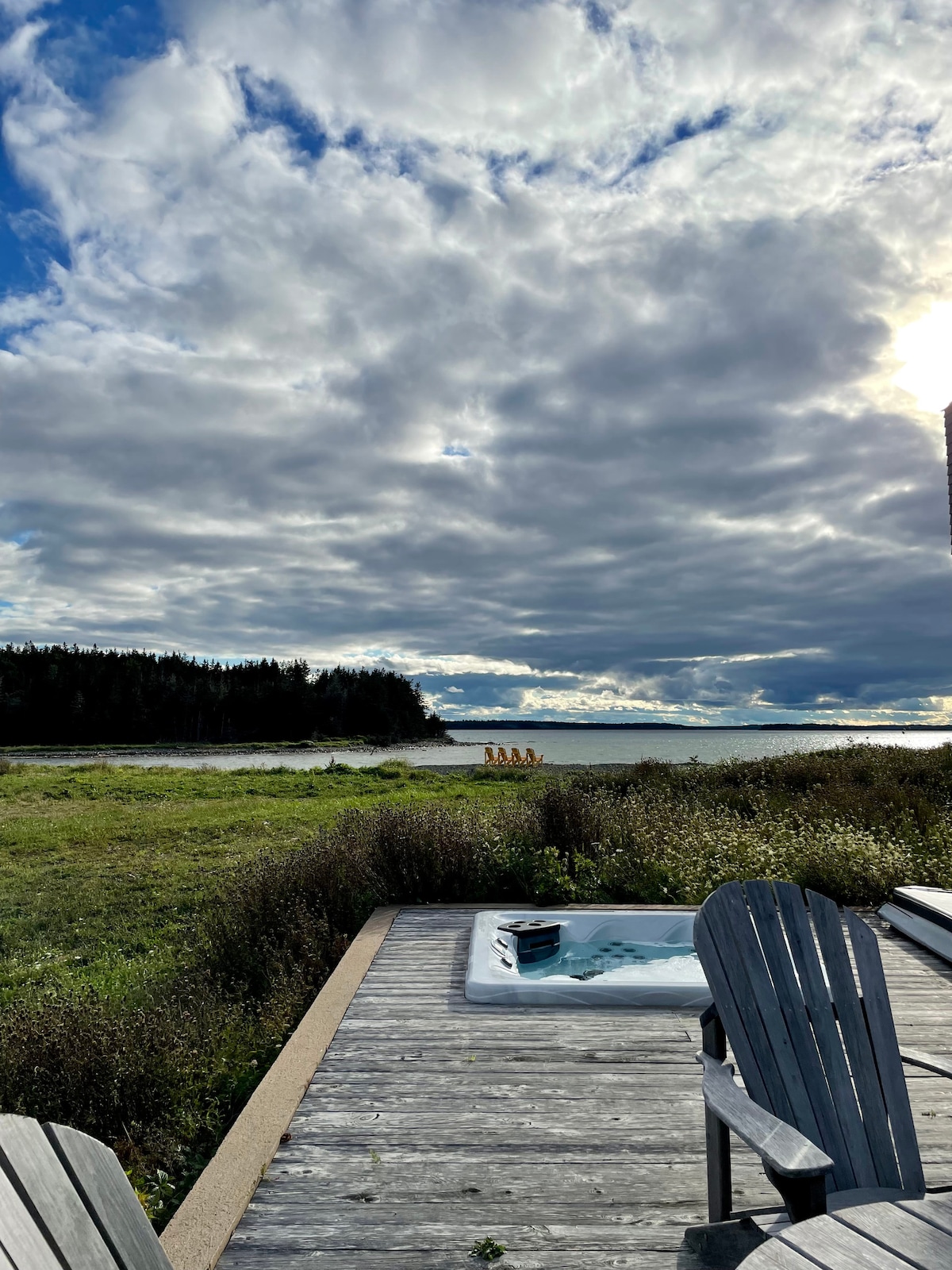 Popolna lokacija za raziskovanje zelo priljubljene južne obale Nove Škotske. Blizu plaž, kavarn, restavracij, očarljivih ribiških vasi in številnih drugih potrebščin. Pridite na čaroben oddih. Skriva se v gozdu ob žuborečem potoku. Uživajte v jutranji kavi na terasi, večerji na žaru s pogledom na reko, uživajte v naši zbirki starinskih plošč, pijte ob štedilniku na drva in plavajte v masažni kadi pod zvezdami. To je čudovita izkušnja s kočo, ki je ne boste pozabili.