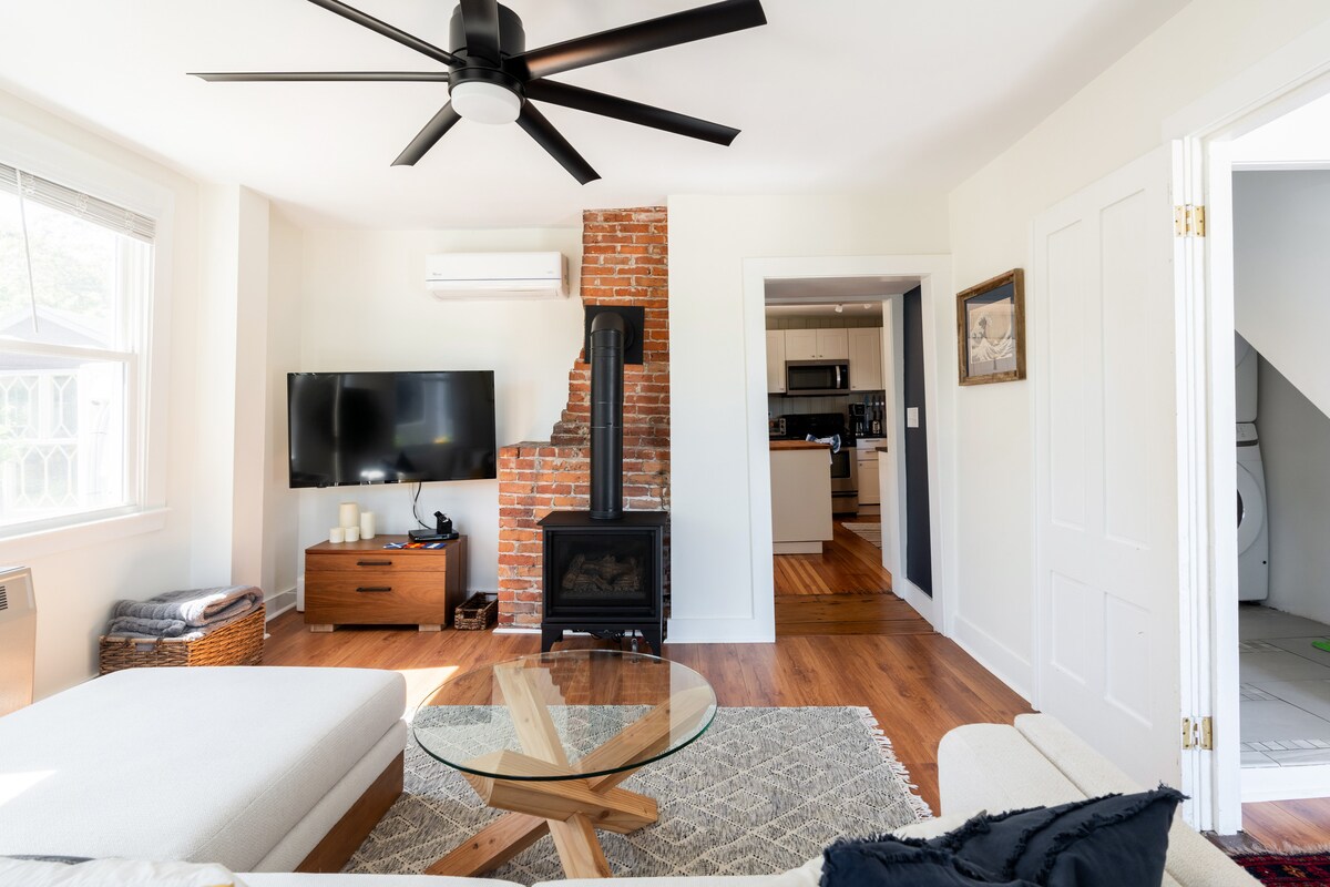 Vaša družina bo blizu vsega, ko boste bivali v tem centralno lociranem oddihu v Novi Angliji. Pred kratkim prenovljeno, vendar okusno izvirno. Vse, kar potrebujete, je peš; nakupovanje, trgovina z živili, jedilnica, jezero, kratka vožnja/vožnja do plaže. Prostor meri približno 900 kvadratnih metrov; 1 kopalnica, zakonska postelja, zakonska postelja (Queen), raztegljiv kavč (Queen) in dodatna soba, v katero lahko postavite dvojno posteljo (na zahtevo). Udobno bo sprejel 4 odrasle osebe, lahko pa bo sprejel do 7 oseb.