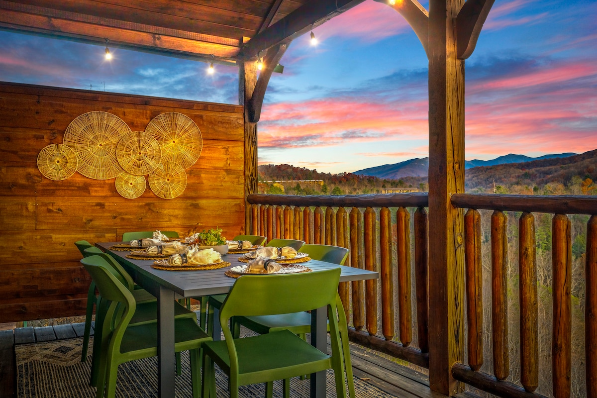 Čaka vas elegantna gorska pustolovščina! Avalon Ridge je osupljiva, zasebna, sodobna koča, ki se nahaja visoko v Smoky Mountains in ponuja neprimerljiv razgled. Obsežna spalnica ima kamniti kamin in razkošno kopalno kad, gozdnato predelano stanovanje je obdano s starim trdim lesom, okna od tal do stropa pa prikazujejo razgled od kjerkoli v koči. Uživajte v sončnem vzhodu z zajtrka ali pa se sprostite ob razkošnem namakanju v zasebni masažni kadi. Rezervirajte to prenočišče na vrhu gore še danes!