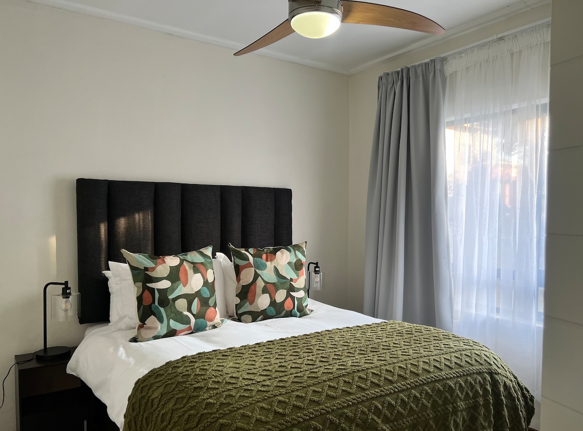Airy in sončna nastanitev . Veliko prostora za sprostitev , medtem ko uživate v visokem vremenu. Sedite in uživajte v jutranji kavi na barvitem vrtu in opazujte življenje ptic. Nova tlakovana površina z mizo in stoli, braai na zahtevo. Prosim, prinesite svoje oglje. Zdaj z rezervno močjo ⚡️in vodo 💦
