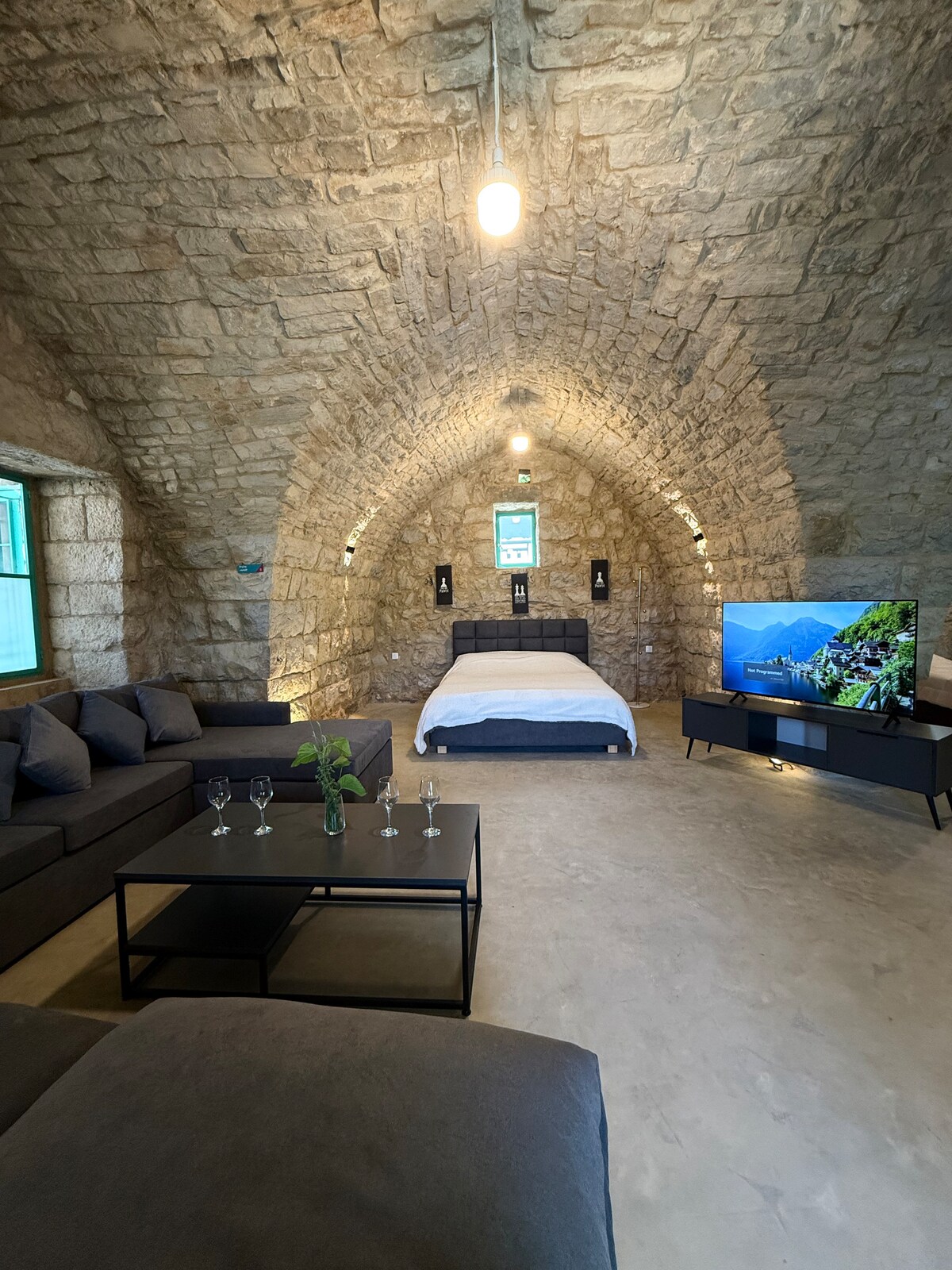 Mini hiša za goste je kamnita hiša, ki se nahaja v bližini koč FarmVille Barouk. Zasnovan je kot garsonjera s popolnoma opremljeno kuhinjsko nišo, kopalnico in spalnico (talna vzmetnica king size). Prostor lahko sprejme do 2 ali 3 goste, odvisno od zahteve. 🍳 Zajtrk je na voljo z doplačilom (15 USD na osebo, 18 USD za nedeljski samopostrežni bife). Ni vključeno v ceno sobe. Obvestite nas vnaprej. V lepem vremenu postrežemo na prostem, pozimi pa v našem udobnem umetniškem studiu.