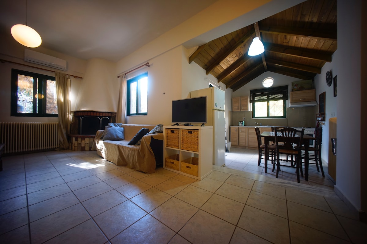 Pozabite na skrbi v tem nostalgičnem, prostornem in mirnem prenočišču. Prenočišče s pogledom na gorovje Ainos in na morje vam bo omogočilo, da uživate stran od množice. Stavba stoji samostojno na 9,7 ha zemljišča, vi pa boste bivali na njeni vzhodni strani.