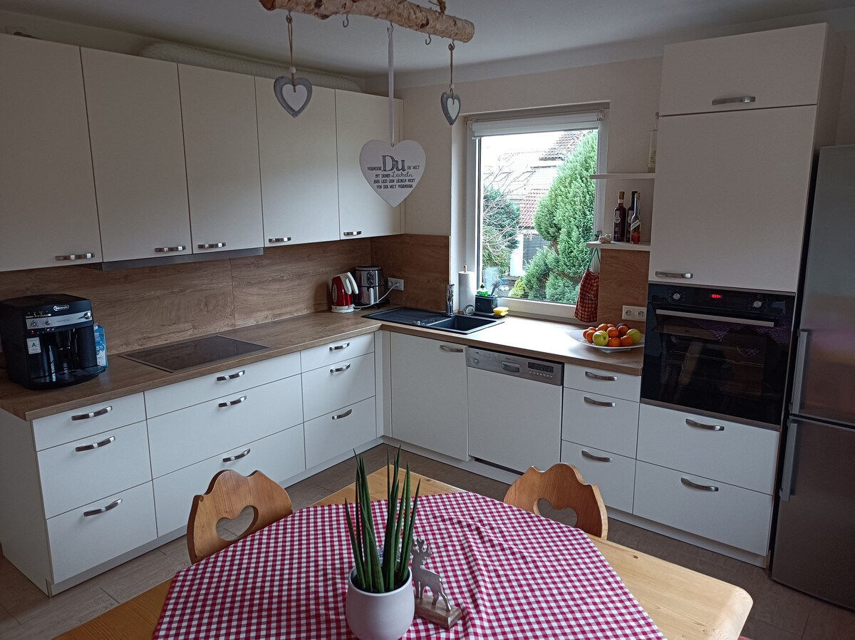 Stanovanje z ločenim vhodom se nahaja v aneksu. Nahaja se na zelo mirni lokaciji, vendar je dobro povezana s Frankfurtom, Fuldo in Aschaffenburgom. Pomembno je, da se počutite kot doma in si privoščite premor od vsakdanjega življenja. Naše stanovanje je udobno in opremljeno z visokimi standardi. Zelo pozorni smo na čistočo in higieno, zato zaračunavamo tudi splošni strošek čiščenja v višini 35 EUR, vključno s svežo posteljnino in brisačami.