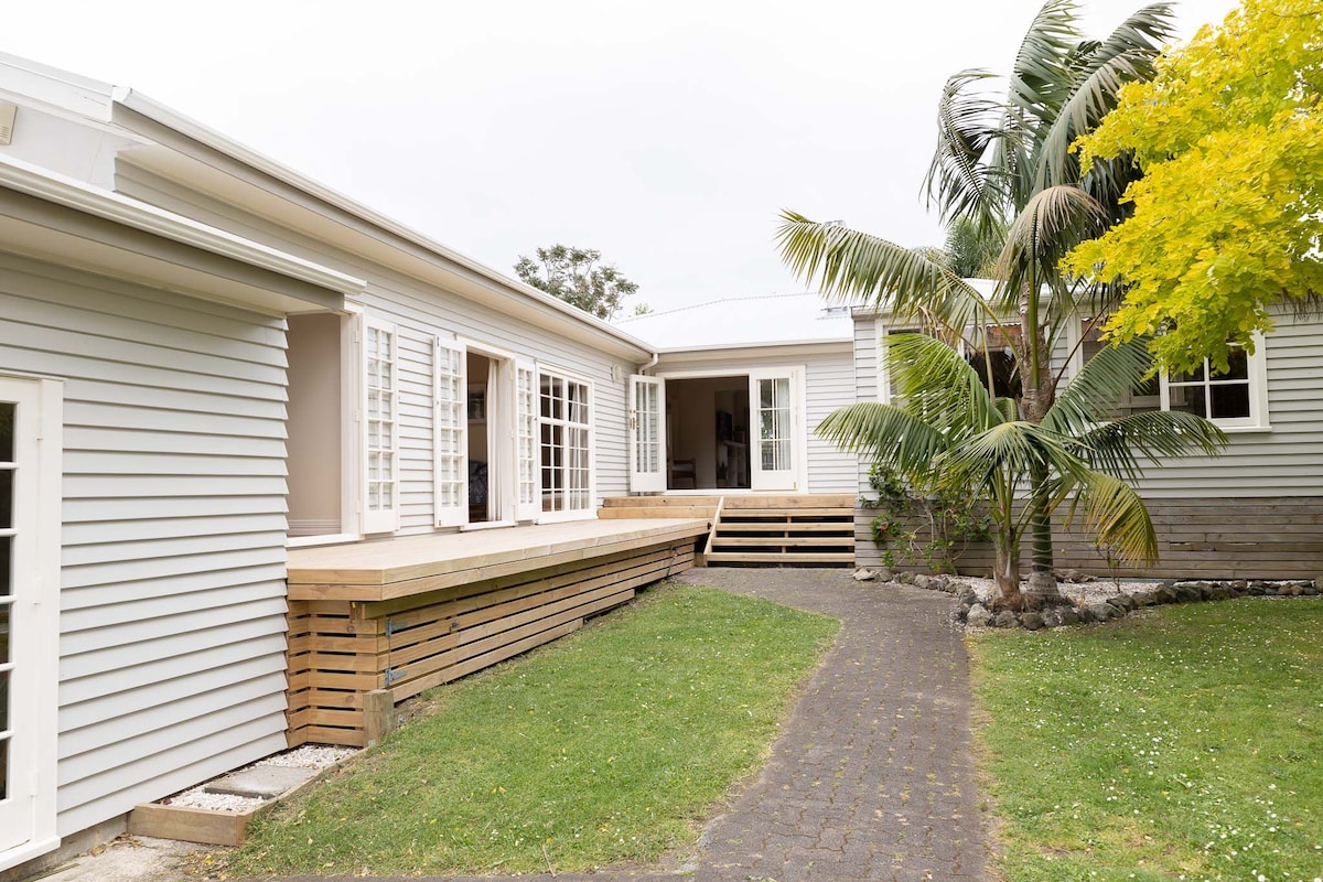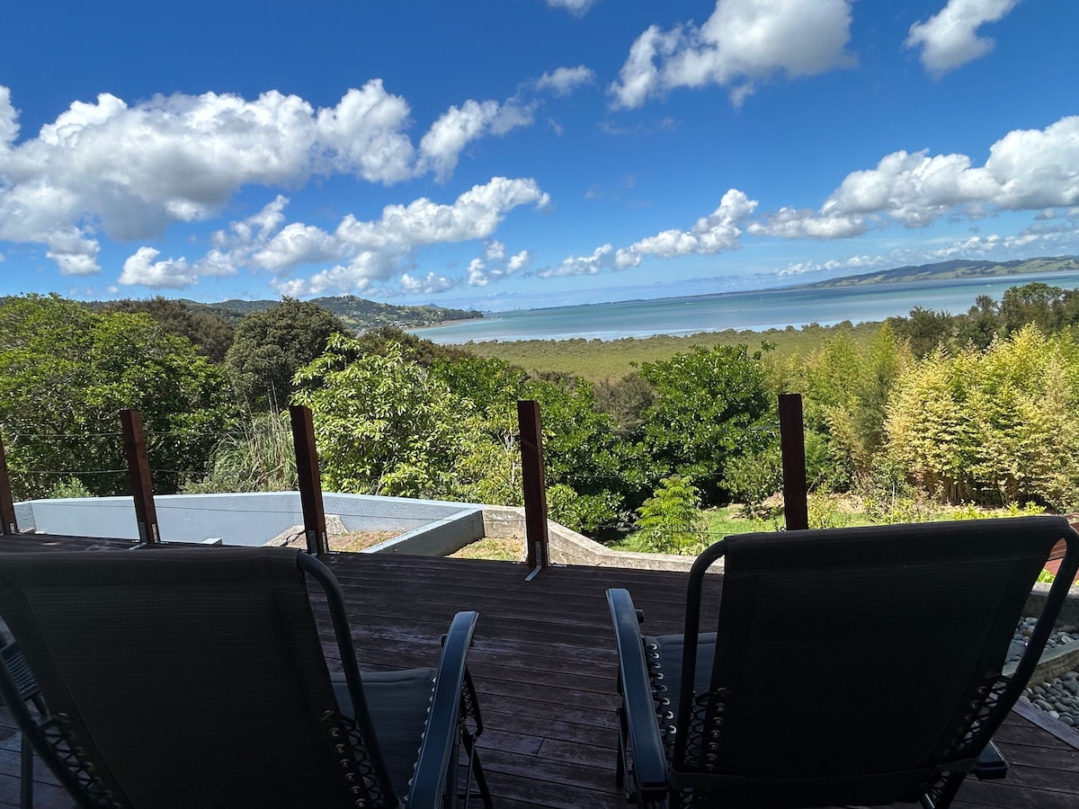 Vaše tropsko zatočišče že čaka na vas. 🌴 Banana Hut je svetlo, zasebno in romantično zatočišče v osupljivem zalivu Taurikura Bay s čarobnim razgledom na goro Manaia. Sprostite se v zasebnem masažnem bazenu, se osvežite pod toplim zunanjim prham ali pa se sprostite v savni. Kolesa in kajaki so pripravljeni za raziskovanje, plaža pa je oddaljena le 5 minut hoje. Surfajte, pohodite, ribarite ali se preprosto sprostite in dovolite, da vas narava obnovi v tem mirnem obalnem raju, obkroženem s palmami, ptičjim petjem, soncem ali pod zvezdami.