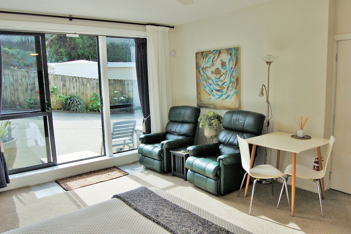 Doživite popolno mešanico udobja in priročnosti v tem popolnoma opremljenem prenočišču, rezerviranem izključno za vašo uporabo, ki se nahaja na priročni lokaciji v Whangareiju, le 8 minut vožnje od mestnega bazena/CBD-ja in 4 minute vožnje do restavracij Kensington Crossing, ne glede na to, ali ste tukaj zaradi dela ali prostega časa. Raziščite slapove Whangārei, umetniški center Hundertwasser in vrtove Quarry Gardens. Ta skriti dragulj z zasebno teraso in parkiriščem za 2–3 avtomobile se nahaja na koncu dovoza, mimo gostiteljevega posestva, na svojem delu.