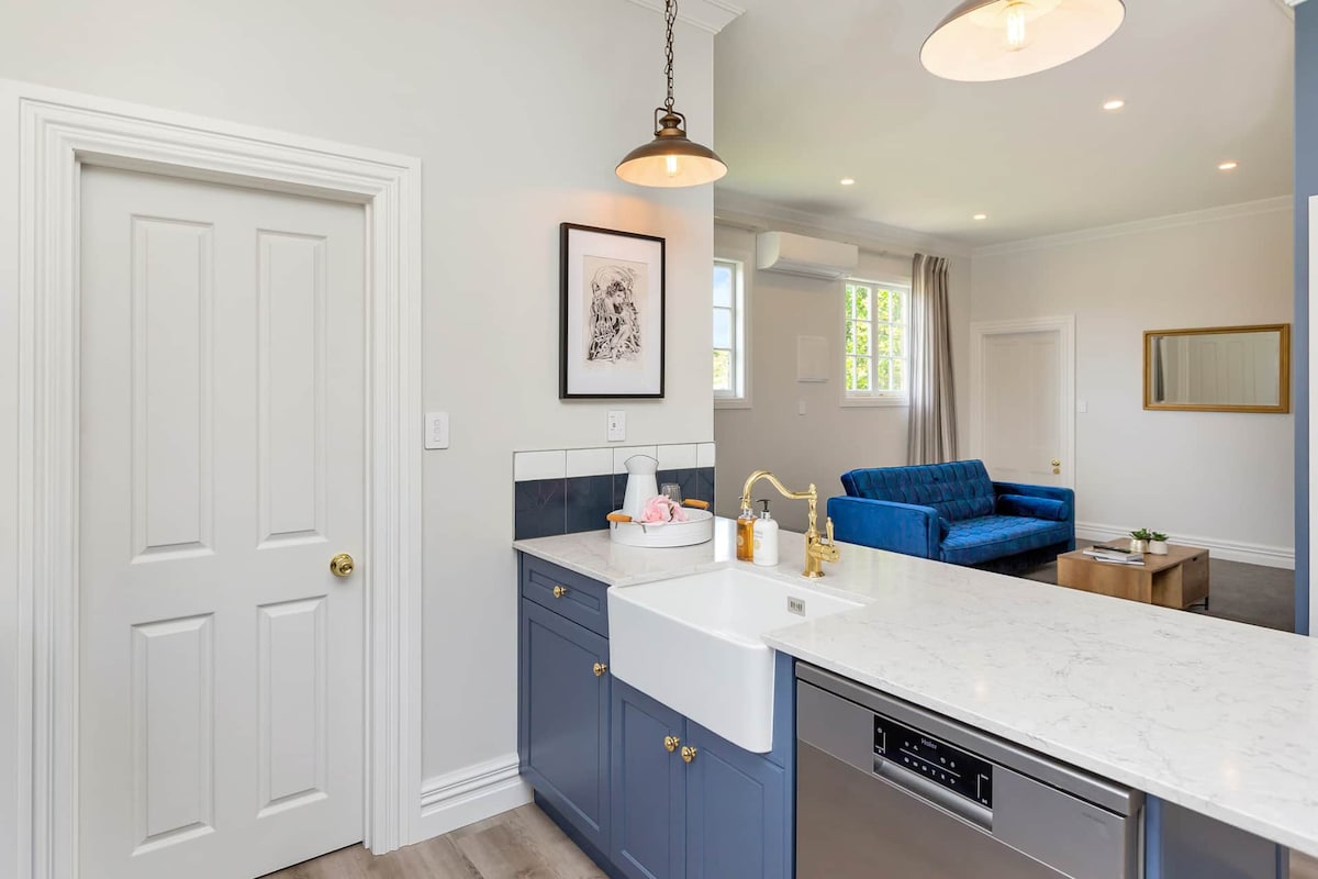 Deloraine Stone Cottage se nahaja ob glavni hiši in se nahaja v čudoviti podeželski pokrajini med cvetočimi vrtovi. Uživajte v miru in tišini, razen domače ptičje pesmi - najbolj pogosta sta Tui in Kereru. Virtualno si oglejte hiško na deželi in zunaj nje na našem spletišču DeloraineCottage •com. Deloraine Cottage se ponaša s 3 velikimi zakonskimi spalnicami, popolnoma samostojno kuhinjo, jedilnico za 6 oseb, pralnico in televizijo z ravnim zaslonom. Za vse sodobno udobje smo poskrbeli.