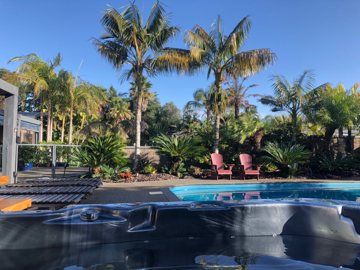 Vaše tropsko zatočišče že čaka na vas. 🌴 Banana Hut je svetlo, zasebno in romantično zatočišče v osupljivem zalivu Taurikura Bay s čarobnim razgledom na goro Manaia. Sprostite se v zasebnem masažnem bazenu, se osvežite pod toplim zunanjim prham ali pa se sprostite v savni. Kolesa in kajaki so pripravljeni za raziskovanje, plaža pa je oddaljena le 5 minut hoje. Surfajte, pohodite, ribarite ali se preprosto sprostite in dovolite, da vas narava obnovi v tem mirnem obalnem raju, obkroženem s palmami, ptičjim petjem, soncem ali pod zvezdami.