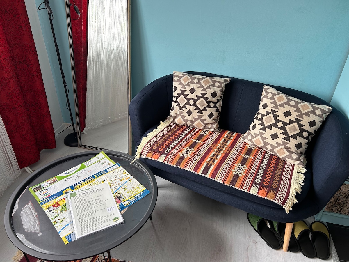 Uživajte v elegantnem in kul hotelskem doživetju v tem stanovanju, ki se nahaja v središču mesta. Pojdite na minuto hoje in doživite glavne sarajevske turistične znamenitosti. Sprehodite se po zgodovinskih ulicah Baščaršije, nato pa se vrnite na kavo ali kosilo v tem urbano elegantnem studiu s popolnoma opremljeno kuhinjo in vsem, kar potrebujete, da se počutite, kot da imate dom s 5 zvezdicami v Sarajevu.