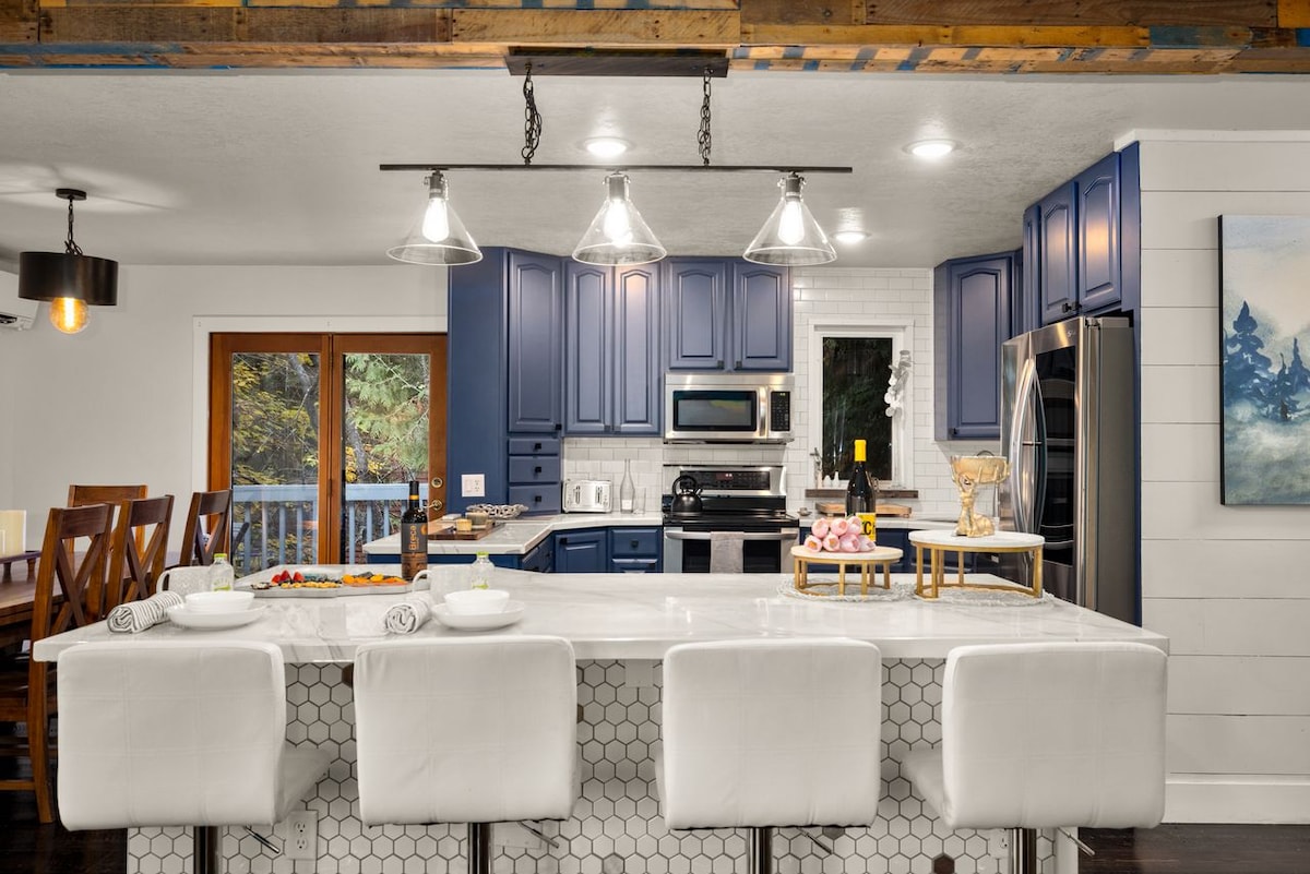 Ta udobna koča, ki se nahaja neposredno na ovinku potoka Garnier Creek, kjer se potikajo v bližini, se nahaja na enem najbolj očarljivih kotičkov namestitve. Sprostite se ob notranjem plinskem kaminu ali pa obiščite naše finske savne v sklopu namestitve in tradicionalne finske zdravilne tretmaje, da uživate v miru v letovišču Blue Star Resort! Uživajte v lastnem ognjišču, žaru na žaru in polni kuhinji ter razkošnem udobju klimatske naprave, Wi-Fi povezave z zvezdicami in udobne kraljevske postelje.