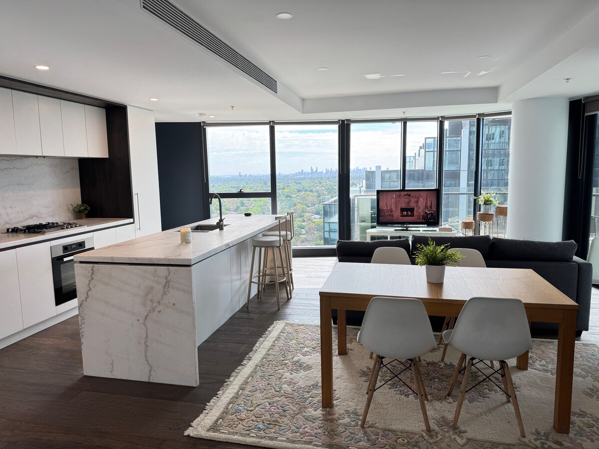 Wake up on level 29 of Skyone — Box Hill's most iconic tower and the tallest residential landmark outside of Melbourne CBD. This 3-bedroom apartment delivers unobstructed panoramic views across Melbourne's city skyline, the Dandenong Ranges and the leafy eastern suburbs, visible from the living room, dining area and all three bedrooms. Step out of the lift and within 2 minutes you're surrounded by some of Melbourne's best dining, fresh markets and most vibrant food and lifestyle hub.