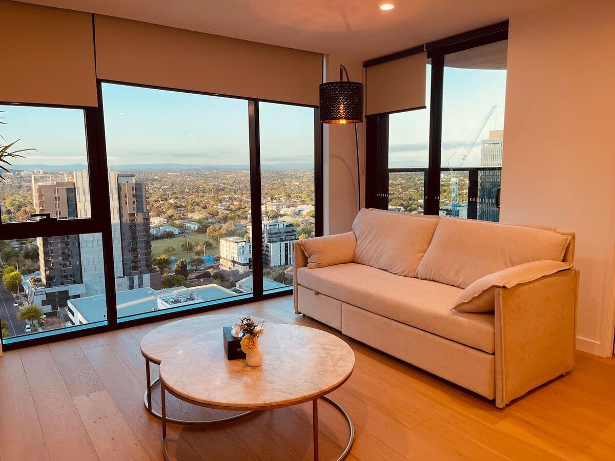 Dobrodošli v prenočišču Trio Box Hill Penthouse. 🌇 To osupljivo popolnoma novo dvoetažno prenočišče ponuja osupljiv panoramski razgled, elegantno sodobno zasnovo in velikodušen prostor. Uživajte v 4 spalnicah, 2 kopalnici, 2 balkona, dizajnerski kuhinji z napravami Miele. Med bivanjem boste imeli dostop do neverjetnih objektov, vključno z bazenom, telovadnico in nebesnim vrtom. Supermarket spodaj, sprehod do trgovin, kavarn, vlakov in tramvajev. Samo 20 minut do CBD-ja — popoln luksuzni oddih!