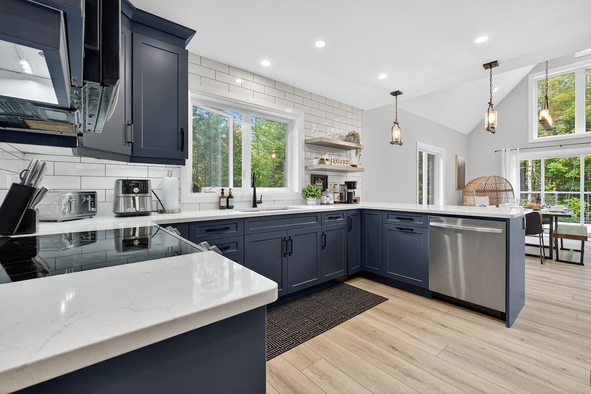 Pobegnite v našo odmaknjeno sodobno kočo v obliki črke A, ki meri 300 kvadratnih metrov in je zasebno zatočišče v gozdu, le 10 minut od Haliburtona. Ta edinstven prostor, ki je kot nalašč za skupine, ki potujejo z družino ali prijatelji, ponuja masažno kad za 6 oseb, savno v obliki soda, igralnico in ognjišče. Uživajte v opazovanju zvezd brez mestnih luči, ki ponujajo popolno mešanico razkošja in narave za vaš oddih.