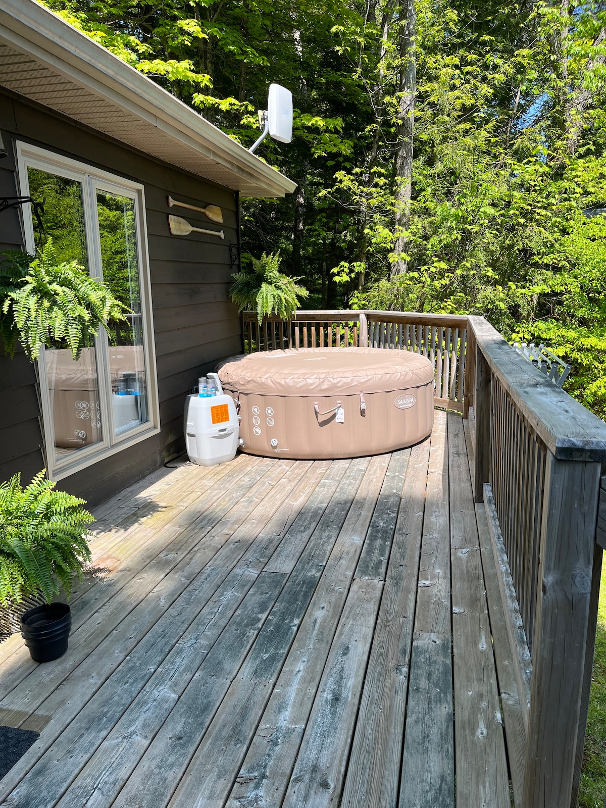 Dobrodošli v Muskoka A-frame, popolnem oddihu ali samostojnem oddihu paru. Sprostite se v novi masažni kadi. Zbudite se ob zibanju krošenj, igrajte družabne igre in poslušajte albume ob ognju, z dvonadstropnim pogledom na gozd. Ta klasična koča v obliki črke A iz sedemdesetih je bila ponovno zasnovana za sodobni svet. Popečemo marshmallowse nad odprtim ognjem. Uživajte v miru ali pa jo izkoristite kot bazo za celoletne pustolovščine. Raziščite gozdove, poti in plaže Arrowhead in Limberlost ali pa obiščite očarljivi Huntsville, kjer vas čakajo restavracije, pivovarne in lokalne znamenitosti.
