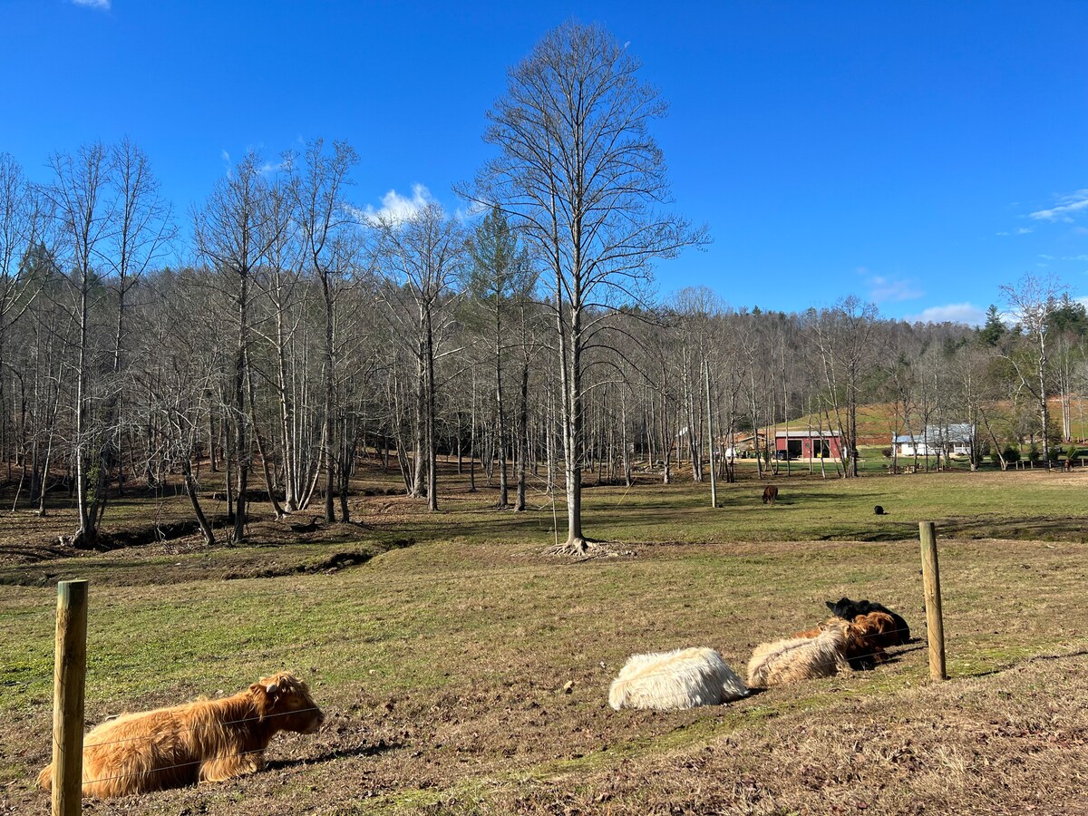 Kmetija Cross Creek vključuje na novo prenovljeno kmečko hišo, ki se nahaja na 78 hektarjih - bistvo rustikalnega oddiha s sodobno opremo. Številne naše živali so rešene in uživajo v iskanju doma na kmetiji. Imamo gorsko govedo, koze, race, prašiče, osla Rufusa in še več! Raziščite več kot 6 milj poti v sklopu namestitve z gorskim vrhom s čudovitim razgledom na vznožje hribov. Zvečer se sprostite s kozarcem vina na verandi ali sproščujočim namakanjem v masažni kadi.