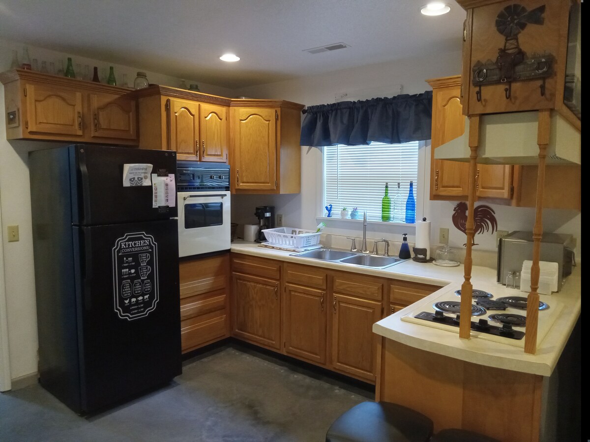 Kick back and relax in this calm and stylish space located minutes from the Missouri Veterans Cemetery and The Stars and Stripes Muesum and Library. 1bdrm/1bath comfortably sleeps 2 and is furnished with everything you need. Inside you will find all new appliances, bedding, and linens. Circle drive with parking. No smoking or pets allowed. Local restaurants include Las Brasis and Elderland. Or try out locally owned businesses just 6.5 miles drive to Dexter such as Hickory Log and Dexter BBQ!