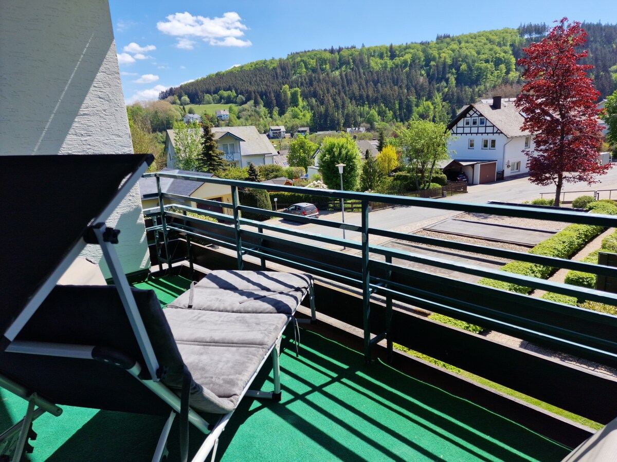Lovingly furnished in the most modern style. The location of our apartment is the absolute highlight, to the center of Willingen you need only 2 minutes walk, then you will find the most popular places such as Brauhaus, Dorf Alm etc.. Despite the central location, you have a sensational view of nature and the mountains of Willingen on the balcony. There are enough free parking spaces that belong to the apartment building. In our apartment you can enjoy your vacation directly after entering.