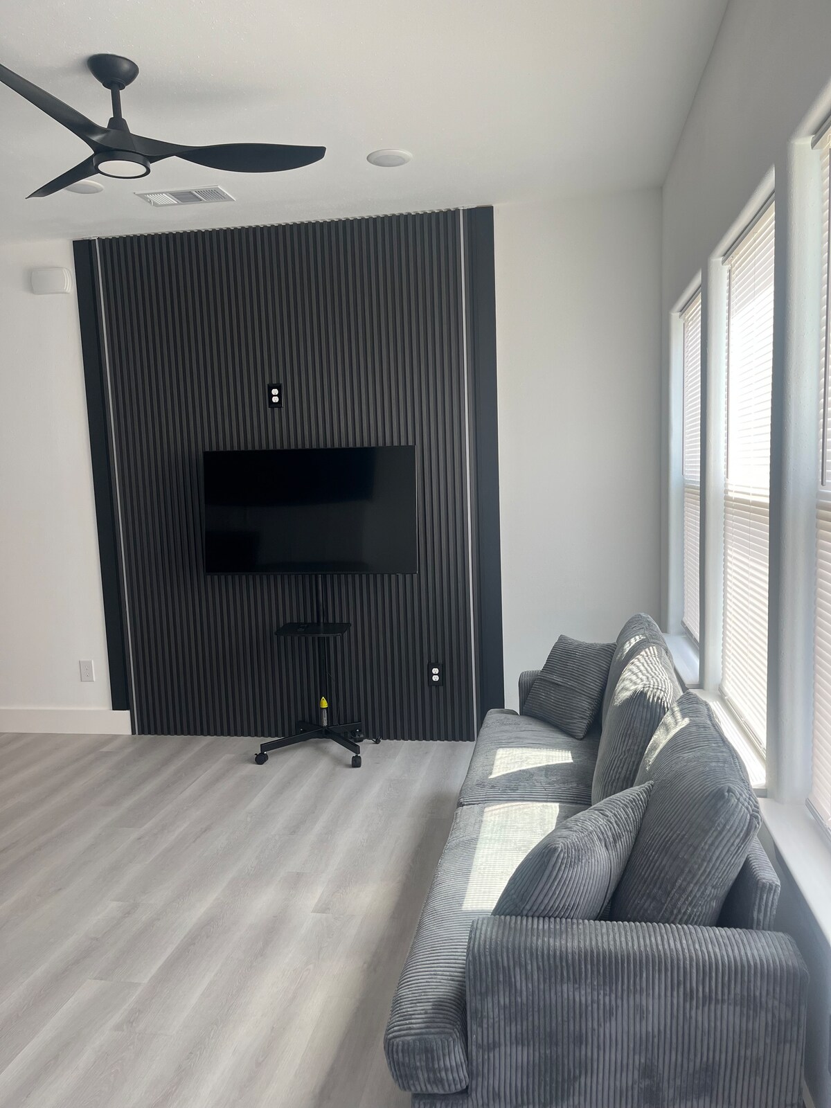 The Beautiful Home is equipped with central air and heating, a washer, dryer, refrigerator, dishwasher, and stove top for cooking. It also features two 70 -inch , 65 -inch televisions, as well as a 30-inch television. Cable spectrum free The home has two bathrooms and two bedrooms. The master bedroom includes a king-size bed, a guest queen-size bed, and a pull-out sofa bed. The house is protected by ADT security, and there is a doorbell camera at the entrance and a smart lock for self entry.