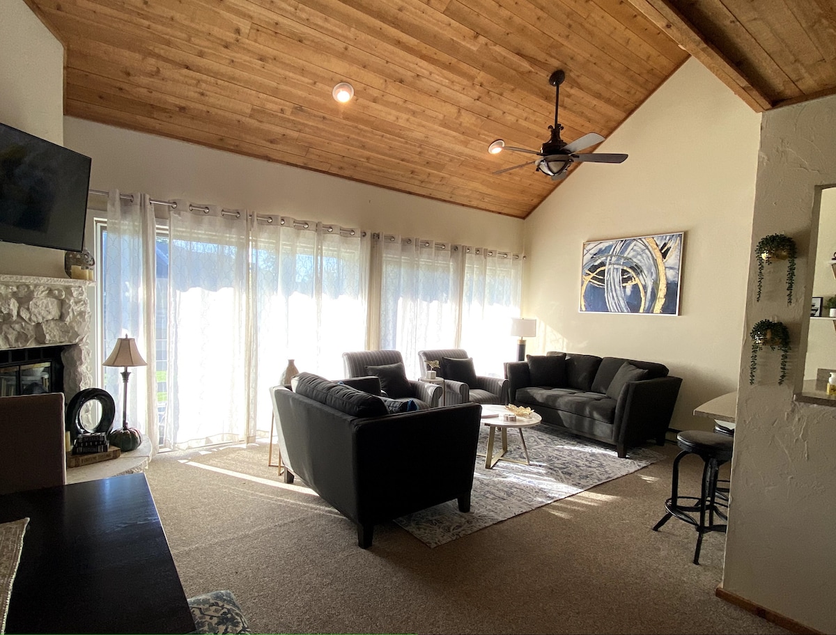 Ta vrstna hiša z 2 spalnicama in 2 kopalnicama s predelanim stanovanjem za 8 oseb (največ 6 odraslih) se nahaja na vrhu vasi Windham Mt Village, zelo kratek sprehod od smučarske koče Windham in žičnic za začetnike. Popolnoma opremljena kuhinja, jedilnica, dnevni prostor s kaminom, vključno z drvi. TV s kabelsko televizijo in brezplačnim hitrim omrežjem Wi-Fi. Zunanja terasa s plinskim žarom. Pralni in sušilni stroj. 2 parkirni mesti spredaj. Dostop do skupnega bazena in masažne kadi, ki sta običajno odprta poleti in pozimi. Klimatska naprava poleti.
