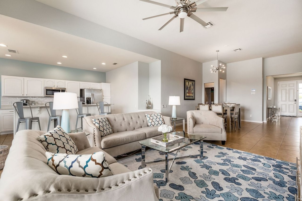 Uživajte v tem čudovitem, sveže prenovljenem prenočišču! MINUTE do Walt Disney Worlda. • 🎢 VODNI TOBOGANI • 🌟TEMATSKI umik Vojne zvezd • kuhinja🍴 zabavljača • Na voljo je voziček 🤱 BOB JOGGER • 🏖️ zasebna terasa z OGREVANIM BAZENOM • ☕️ **Latte in kavarna** • 📶 Fiber High Speed Wi-Fi Premišljeno urejeno za vaš popoln UŽITEK. Čudovita sodobna notranjost, tla iz keramičnih ploščic in visokokakovostna dekoracija. Ta brezhibna 3 spalnica in 3 kopalnice lahko spijo do 8 oseb.