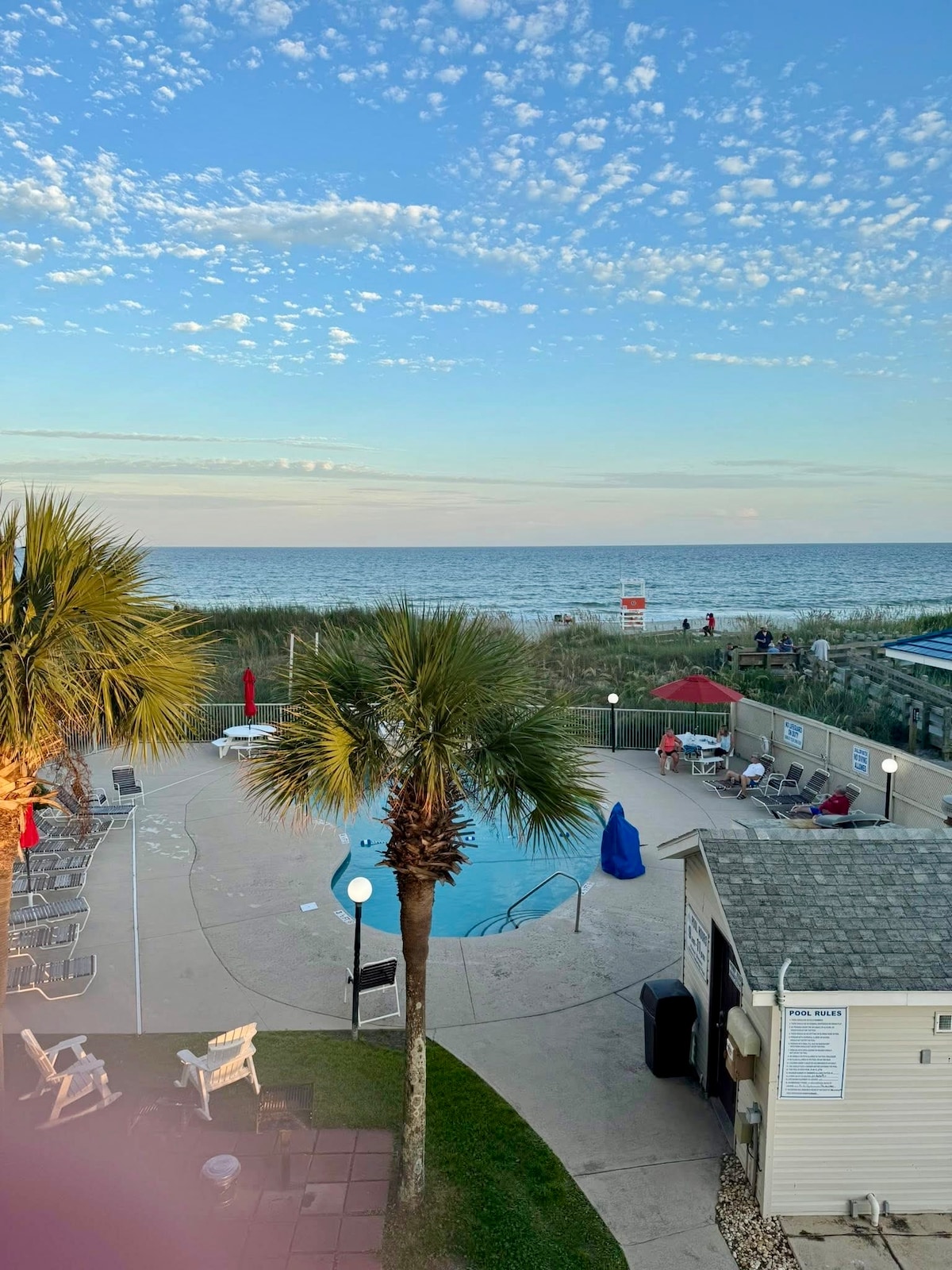 Casual beach decor at Windy Hill Oceanfront condo. Updated, freshly painted, cozy and sparkling clean condo, kitchen with granite counters and all stainless appliances. Elevator. Secure WiFI and Smart TVs in every room. Use our beach toys, chairs, umbrellas to make your trip fun and relaxing. Relax on the large balcony, listen to the surf or take a few steps on the boardwalk to the ocean sand and water. Fresh crisp linens on beds upon arrival w/towels. Outdoor pool (seasonal/unheated)