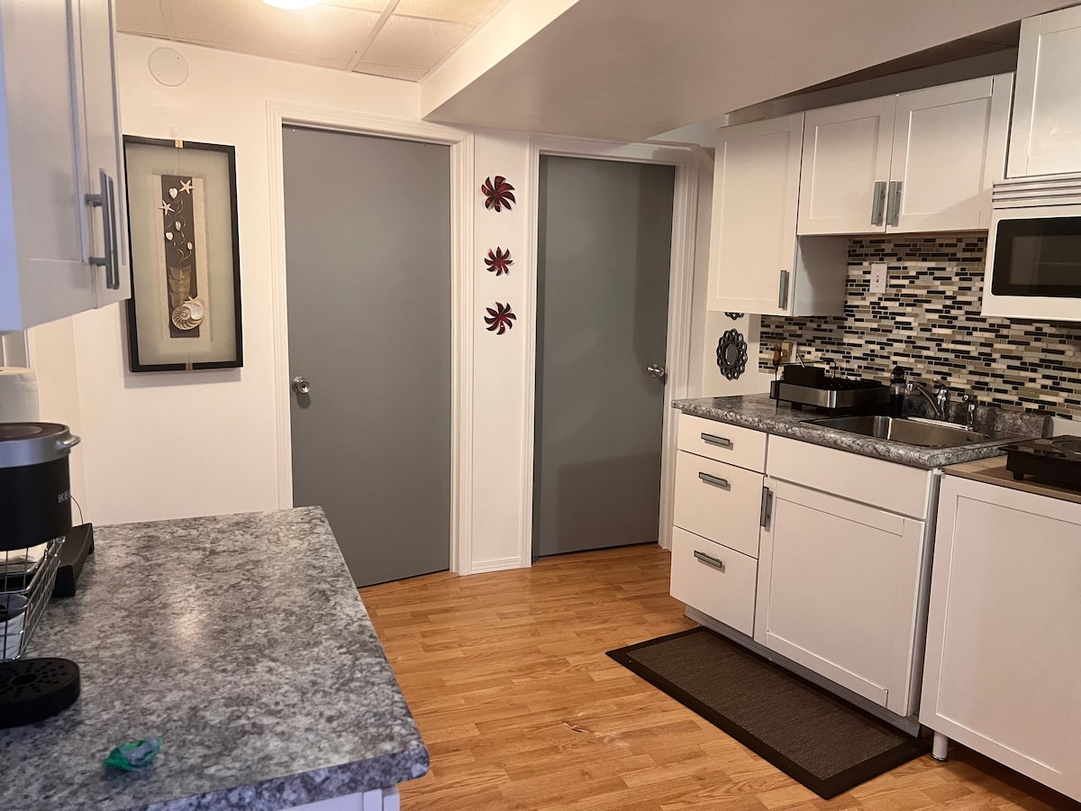 Premišljeno smo vas upoštevali, ko smo posodobili ta dvostanovanjski objekt v 2. nadstropju s 3 čudovitimi spalnicami in 1 kopalnico. Uživajte v udobju doma, ko ste daleč od doma. Pripravite doma pripravljene obroke v dobro opremljeni kuhinji. Počivajte in se sprostite na velikem udobnem predelu v odprtem dnevnem/jedilnem prostoru. Potopite se v vzmetnico iz spominske pene in razkošno posteljnino. Priročna pralnica v apartmaju. V bližini so drsališča na prostem, termalno kopališče Thermea, bazen PanAm ter trgovine in restavracije.