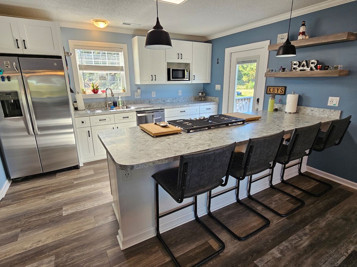 Naša hiška na deželi je miren oddih. Sedite na verando in uživajte v pticah in skodelici kave. Majhna kuhinja nudi vse, kar potrebujete za svoje bivanje, vključno z lokalno okusno poslastico. Miza v spalnici vam nudi prostor za delo, medtem ko drugi v vaši skupini uporabljajo prostore v dnevni sobi ali jedilnici. Ob vikendih se lahko sproščeno sprehodite do parka Ruritan do galerije Studio 32 in trgovine z darili. Čez 10 minut vožnje do državnega parka Merchants Millpond. Zgodovinski Edenton je oddaljen samo 30 minut.