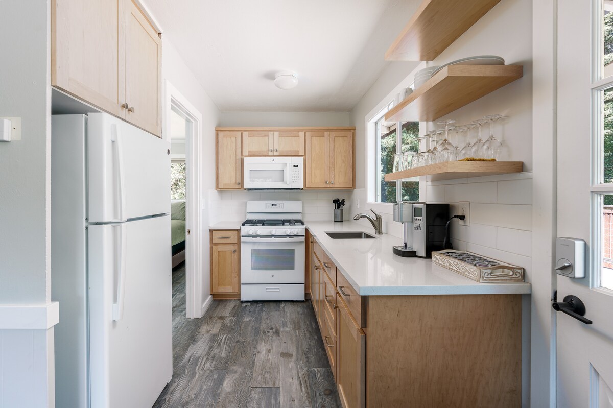 Naš studio z odprtim načrtom ima čudovit razgled na naš orehov sadovnjak, zgodovinski skedenj in polja. Uživajte v sončnem zahodu nad sosednjimi vinogradi z vaše zasebne terase. Nahajamo se miljo stran od čudovitega državnega parka, kar pomeni, da če želite kdaj zapustiti našo mirno majhno kmetijo. V bližini so tudi vinske kleti, pohodniške poti vzdolž mirnega vulkana ter največje in najstarejše kalifornijsko jezero. Naša kmetija je predstavljena v septembru 2022 v reviji Sunset. Preverite!
