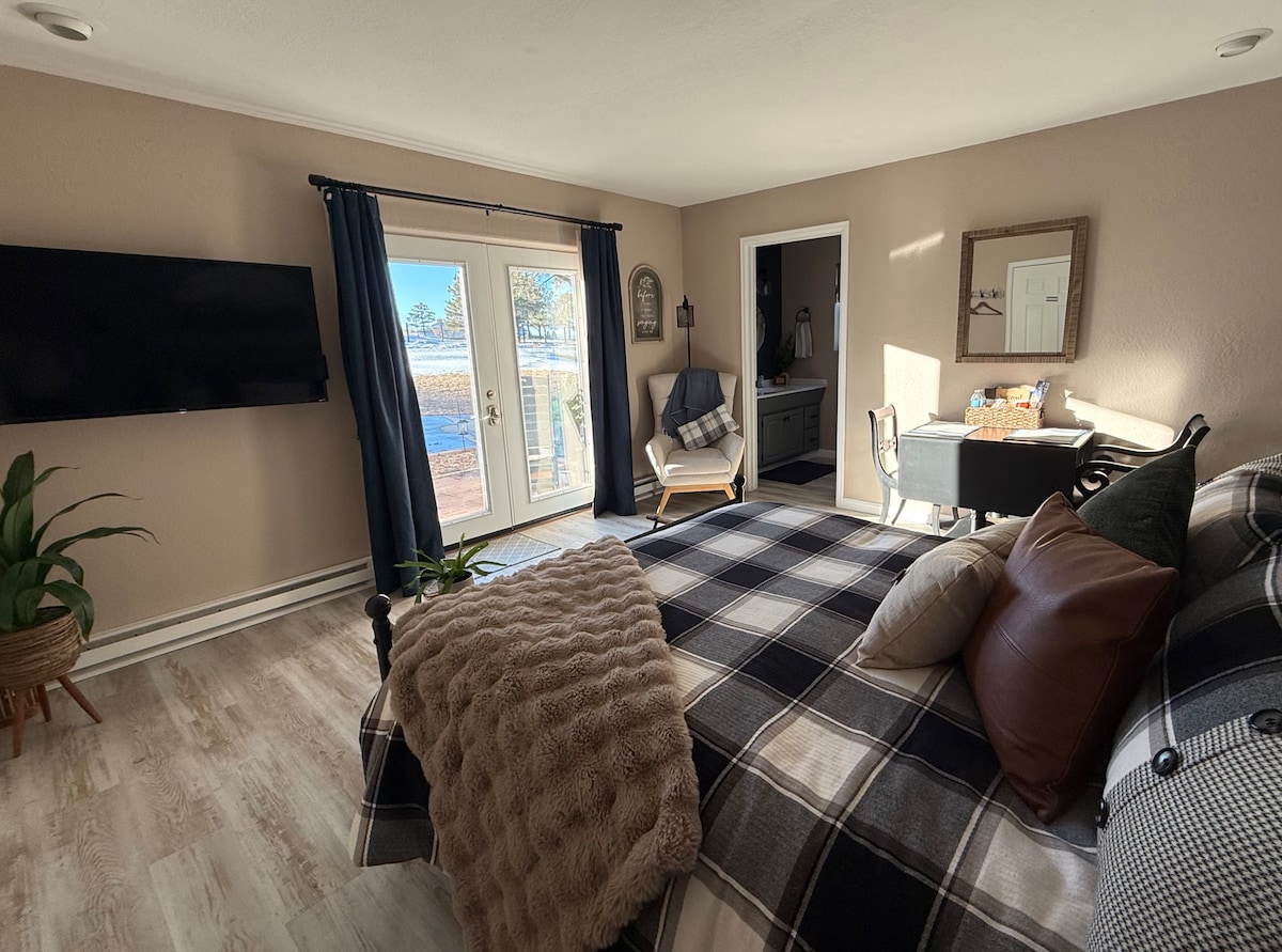 Rustic and eco-friendly this studio guesthouse overlooks the quaint town of Palmer Lake. Within walking distance of all sorts of outdoor recreation and wonderful restaurants. We're a short driving distance from Colorado Springs and the US Air Force Academy, Garden of the Gods and Pikes Peak region. It's the perfect place to relax and recreate while maintaining distance and privacy. We look forward to hosting you! Becky and Phil