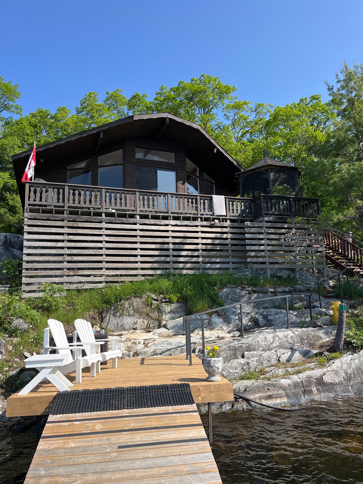 Umaknite se v osrčju Muskoke in uživajte v bleščečem miru reke Muskoke. V notranjosti je odprta kuhinja, dnevna soba in jedilnica ter dve spalnici s pogledom na gozdnato dvorišče s teraso. Prižgite žar na sprednji terasi ali nazdravite marshmallows ob reki v svoji novi oazi ob vodi. ☃️❄️ Od drsališč, zimskih festivalov in vožnje z zanko do vožnje s pasjo vprego, krpljanja in vožnje s sanmi – zima v koči je razburljiva, mirna in lepa. Vprašajte nas za priporočila.