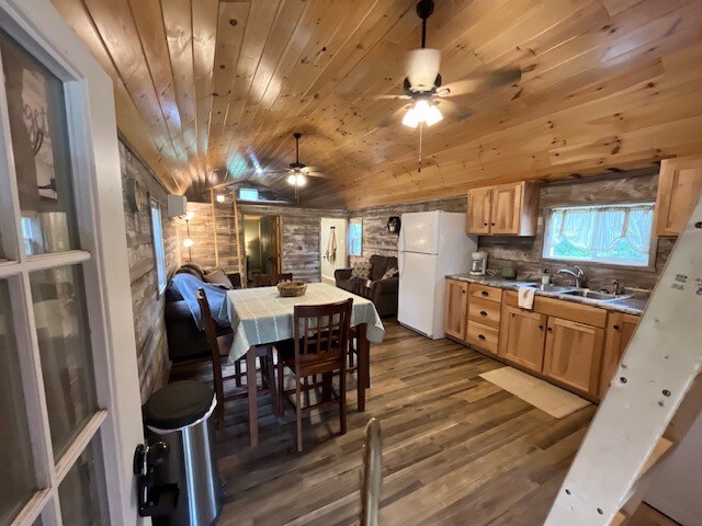 Na novo dodana 2. kopalnica in pralnica, pritrjena na hiško na deželi v košu za žito. Sprostite se z vso družino v tej mirni deželi, ki se nahaja približno 10 milj od čudovite reke Eleven Point, ki je znana po vožnji s kanujem, kajaku in ribolovu. Uživajte v kuhanju na žaru in s'moresu ob ognjišču. Uživajte tudi v narodnem gozdu Mark Twain s čudovitimi pohodniškimi potmi in naravnimi vrelci. Zabava ni dovoljena.