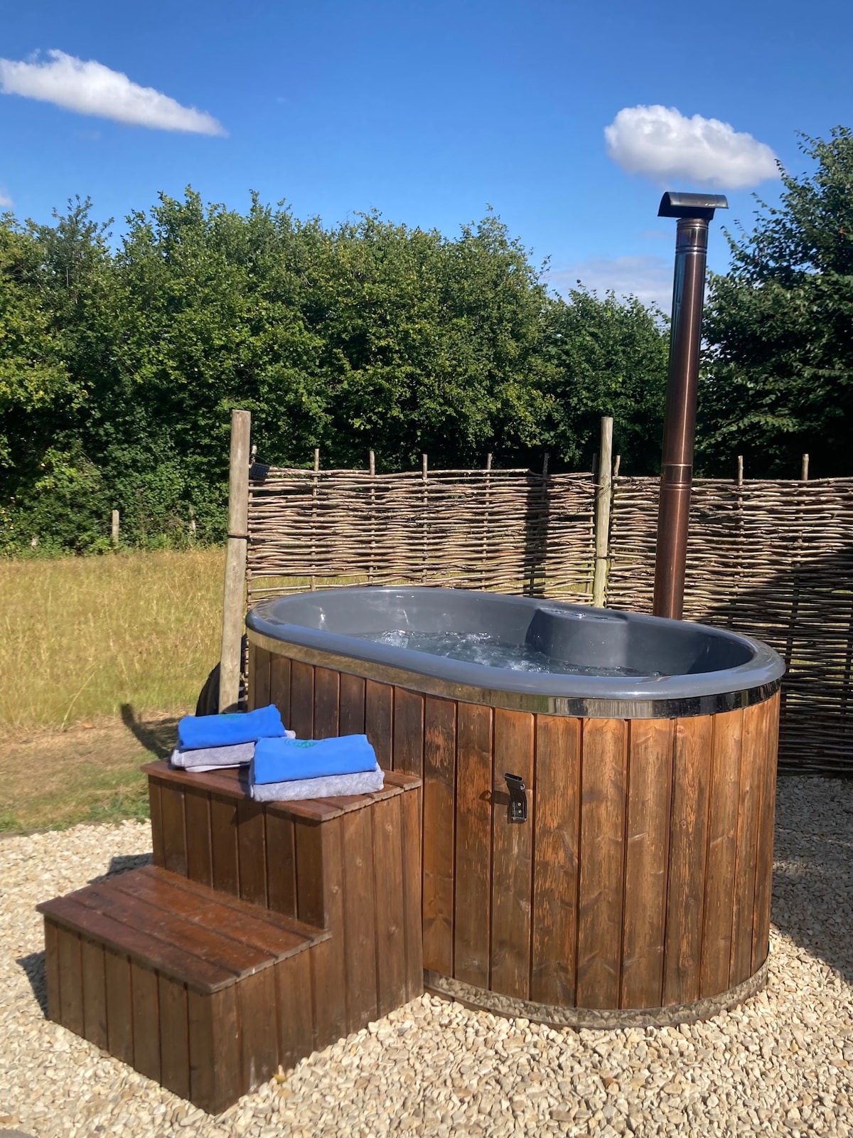 Bluebell Pod is our couples pod, with a double bed and pull out sofa, dining table, living space and a romantic outdoor bathtub with fantastic lake views and views of the farm. Our self catering pods have a kitchenette with induction hobs and a microwave. We also have outdoor seating and a private BBQ for an al-fresco dining experience. Each pod has luxurious décor selected with extra comfort in mind. Near Thornbury, Bristol where you will find lots shops and restaurants.