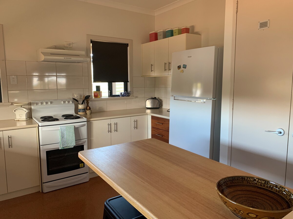 Brand new, modern 2-bedroom accommodation offering peaceful country living with stunning views. Located just 20 minutes north of Geraldton, close to Coronation Beach—one of the world’s best spots for kite- and windsurfing, with food van on weekends. Event locations like Nukara Farm and Nabawa Valley Tavern are nearby. Pets are welcome if they bring their own bed and are strictly kept off the furniture. undercover shed space. Relaxing getaway with all the comforts of home.
