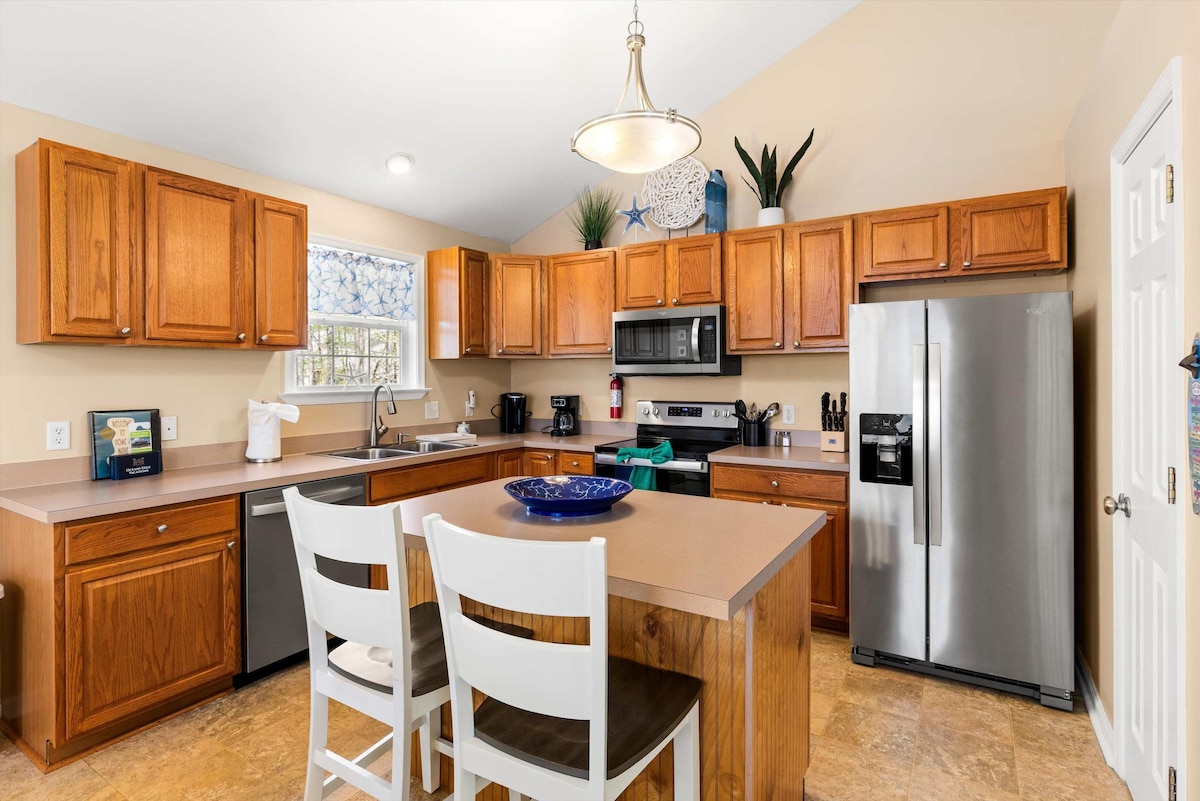 Welcome to Home A Wave From Home — a fresh, coastal modern getaway coming to life in Ocean Pines! This 3-bedroom home has just recently been beautifully renovated. Enjoy modern coastal décor, a spacious open layout, and a sunlit deck with outdoor dining overlooking a fire pit with Adirondack chairs for seating in your private backyard. Perfect for families and groups seeking a peaceful retreat.