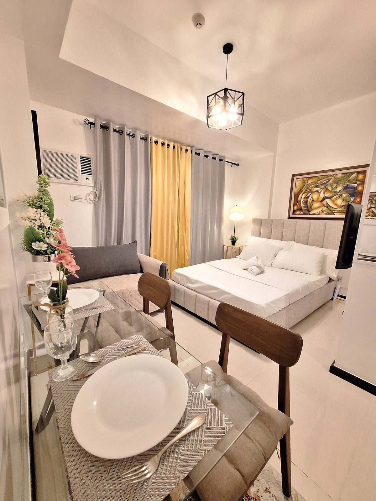 Welcome to our stylish Airbnb in the heart of Bonifacio Global City (BGC)! BGC is known for its premium location and high accommodation costs—but with us, you’ll enjoy the best value without compromising comfort or quality. ✨ Just a 3–5 minute walk to malls, shops, and restaurants ✨ Free access to the pool & sauna ✨ Ensuite washer and dryer for your convenience ✨ Excellent transportation options nearby Enjoy a comfortable, hassle-free stay at an unbeatable price. Book now!