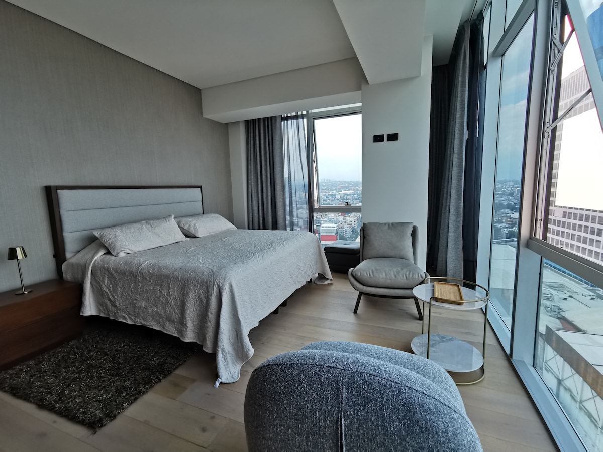 Uživajte v tem mirnem in osrednjem prenočišču, ki se nahaja na vrhu z edinstvenim razgledom in osvetlitvijo. Ima vse, kar potrebujete za udobno bivanje: zakonsko posteljo in raztegljiv kavč, opremljeno kuhinjo in prho. Njegova lokacija je nepremagljiva, na eni strani Condese in WTC, obdana s pomembnimi avenijami ter z več možnostmi prevoza in mobilnosti. Le nekaj ulic od trga Plaza Metrópoli. Primerno za poslovna potovanja ali za popotnike.
