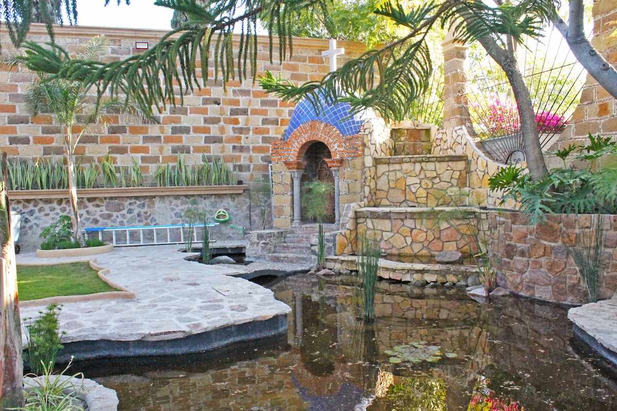 Beautiful house with lush, multi-level garden and two fountains. Brightly painted 3-bedroom/3-bath home with art, antiques, and large, well-equipped kitchen. Enjoy the friendly Mexican neighborhood's local shops and market. Our wonderful house manager, Enrique, lives in a separate unit on the property but has no access or window views to the main property. Pets considered. NOTE: We are a five-minute walk to one of the best Spanish schools in San Miguel!