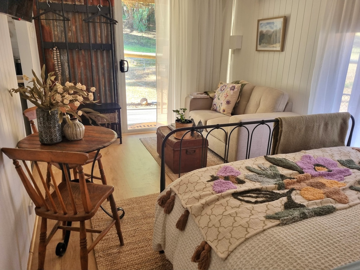 A cosy Tiny Home next to a forest. Relax in your own private outdoor area, walk in our mini forest, be mesmerised by our abundant wildlife, and maybe catch a glimpse of the stunning wedge tail eagle during your stay. Imagine gazing at the stars through our spectacular skylight, all while you are lying in bed. Our beautiful tiny house is available all year around, and includes breakfast provisions.