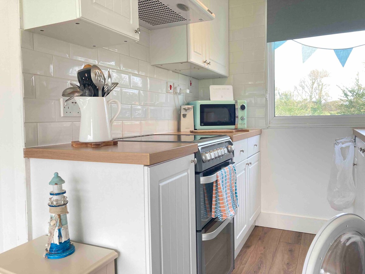 A lovely beach inspired chalet with modern decor and facilities. Comes fully equipped for everything you need for 4 people. A peaceful green site above Yaverland beach in an AONB. The site is quiet with no onsite facilities. It opens onto the coastal path with beautiful walks & scenery. We accept well behaved dogs one large or two small. The chalet is a 5-10 minute walk to the large sandy beach (dog friendly). Amenities & attractions nearby. Welcome pack on arrival.