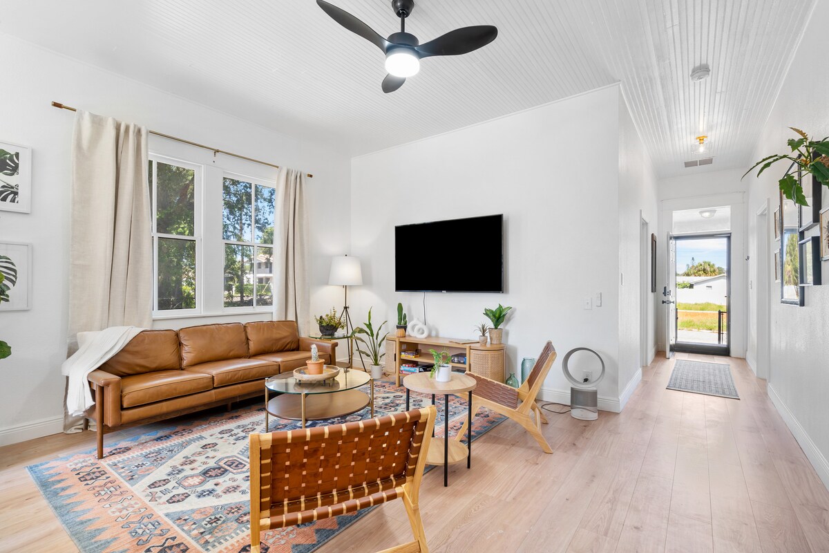 Doživite sodobno udobje po ugodni ceni. Uživajte v elegantnem doživetju v tem bivališču v središču mesta Seminole Heights v Tampi. Popolnoma obnovljeno in zasnovano za dolgotrajno in kratkotrajno udobje in razkošje. To stanovanje 910 sf se nahaja v udobni soseski v bližini Starbucka! 17 minut od letališča, 15 minut do stadiona in mesta Ybor, 7 minut do živalskega vrta Lowry Park, 9 minut do središča mesta in 12 minut do Amalie Arene.