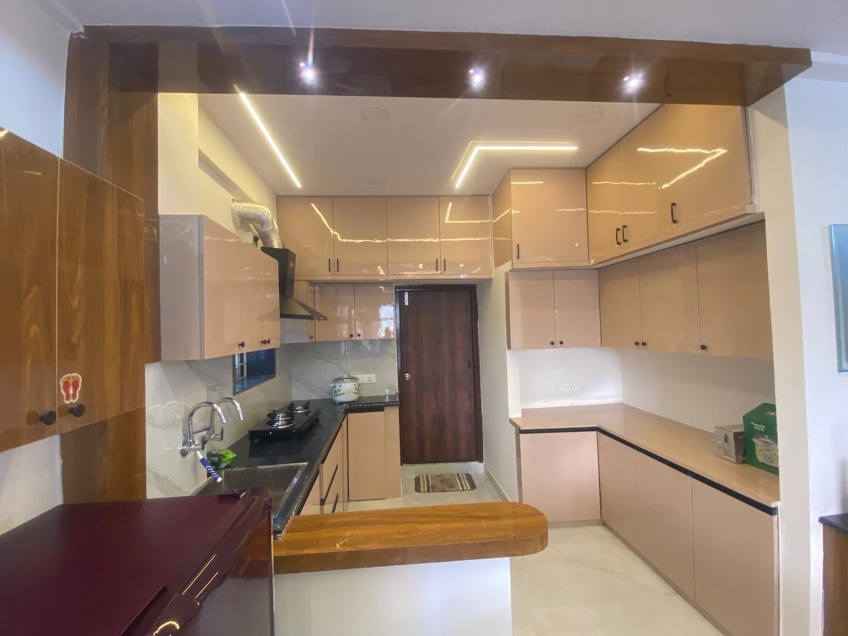 Gre za popolnoma novo stanovanje, ki ponuja miren in vrhunski občutek – kot nalašč za zabave in prav tako udobno za družinska bivanja. Na vsakem nadstropju je samo eno stanovanje, na voljo pa je tudi dvigalo, kar zagotavlja zasebnost in mir. Nahaja se v bližini podjetij DLF in Wipro ter ameriškega konzulata in podjetja AIG. Stanovanje ima 2 spalnici, 2 klimatski napravi, 2 kopalnici, 1 balkon in popolnoma opremljeno kuhinjo s plinskim štedilnikom, štedilnikom in kuhinjsko posodo. Na voljo so pralni stroj, hitra brezžična internetna povezava, televizor, likalnik, mešalnik, grelnik vode in vsa osnovna oprema.