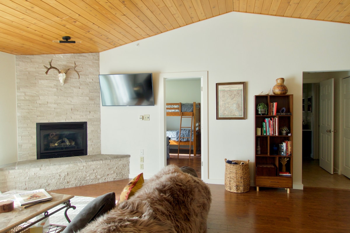 Sprehodite se do vsega, kar ponuja Big Sky! Ustvarite nekaj spominov na Montano v edinstvenem prostoru, ki gosti lokalno gostje. Novo prenovljeno! Dve veliki spalnici, učinkovita kuhinja in plišast dnevni prostor omogočata nepozaben počitek po velikem dnevu rekreacije. Gostom so na voljo parkirišče na ulici, čudovita terasa, pralnica perila in dvorišče. Otrokom bo všeč park čez cesto! 8 milj od žičnice/3 ulice od brezplačnega smučarskega prevoza.