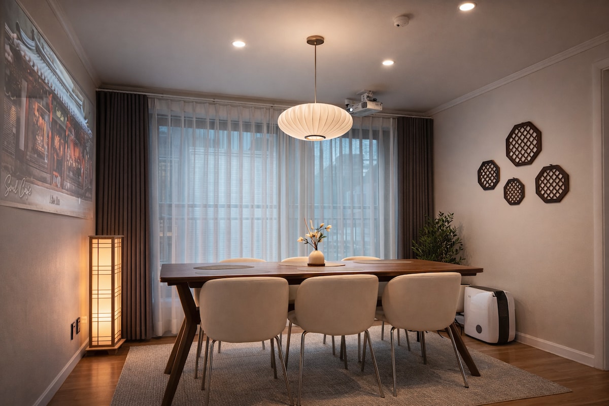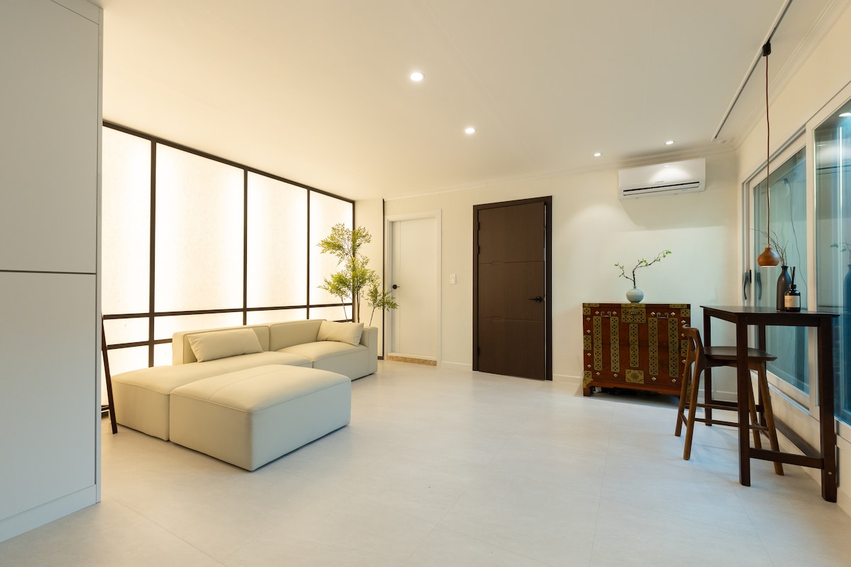 NuileStay je prijeten hanok, ki združuje tradicijo in udobje, na vrhunskem mestu z enostavnim dostopom po Seulu. Pozdravljata vas mirno dvorišče in hanok v obliki črke »ㄷ«. Okna od tal do stropa uokvirjajo dež ali sneg, notranjost pa združuje brezčasen šarm s sodobno priročnostjo. - 7 min hoje do Gyeongbokgunga - 5 minut do letališkega avtobusa - Brezplačni premium YouTube / Netflix – pralni in sušilni stroj (LG), - Enostaven dostop do Myeongdonga, Insadonga, Namsana, tržnic - 2 spalnici, 2,5 kopalnice - Posamezno ogrevanje/hlajenje v vsaki sobi