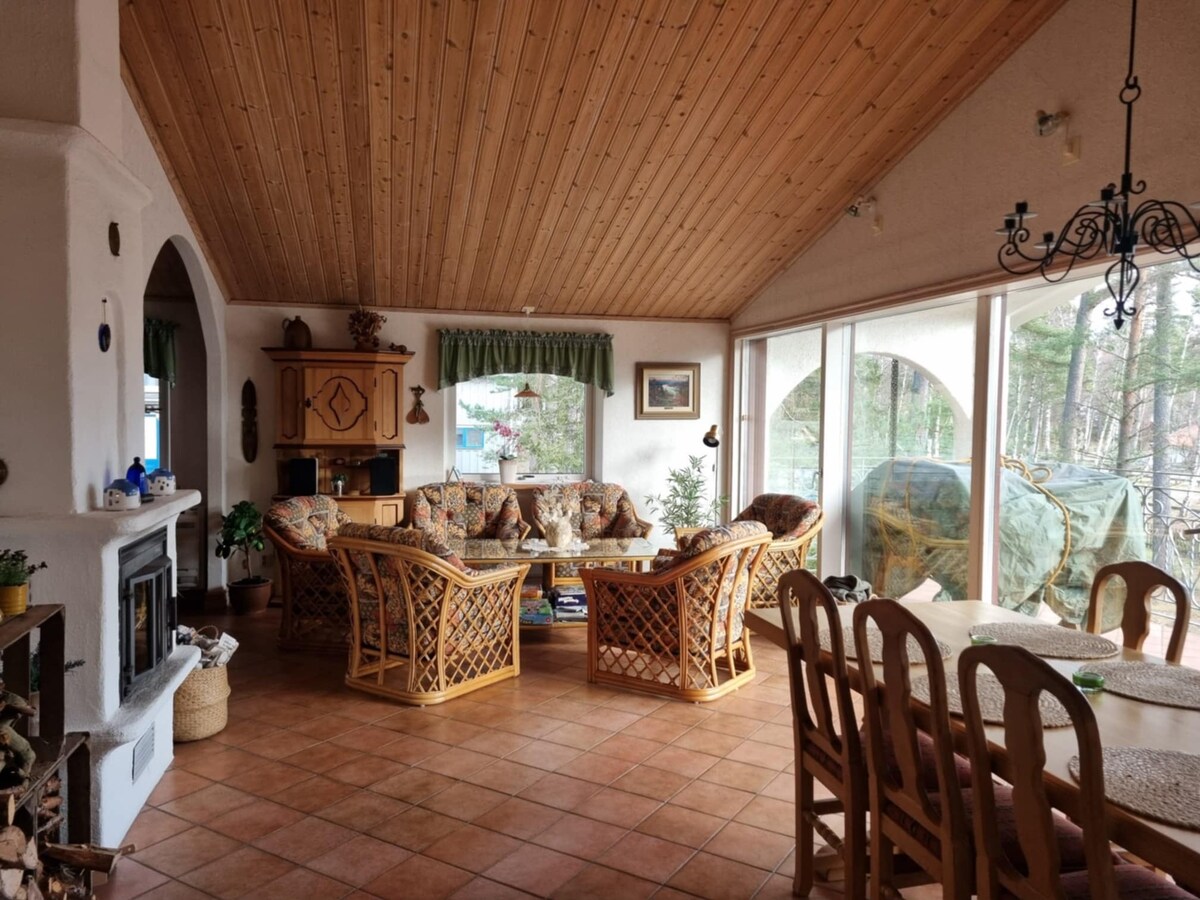 Huset hyrs ej ut 21/6 - 15/8. Bokning öppnar 9 månader innan. Villa med fantastiskt läge precis vid stranden & panoramautsikt ut mot havet. Naturtomt med stort trädäck och sitt-/matplatser. Kök, matplats & vardagsrum i öppen planlösning. Avskilt TV-rum (endast streaming). 3 sovrum med dubbelsängar. Loft med 4 sängar (OBS fara: brant trappa). 2 badrum varav ett med bastu & tvättmaskin. Privat parkering. Lakan, handduk & WiFi ingår. Ved ingår inte Pristillägg vid vistelse kortare än 3 nätter.