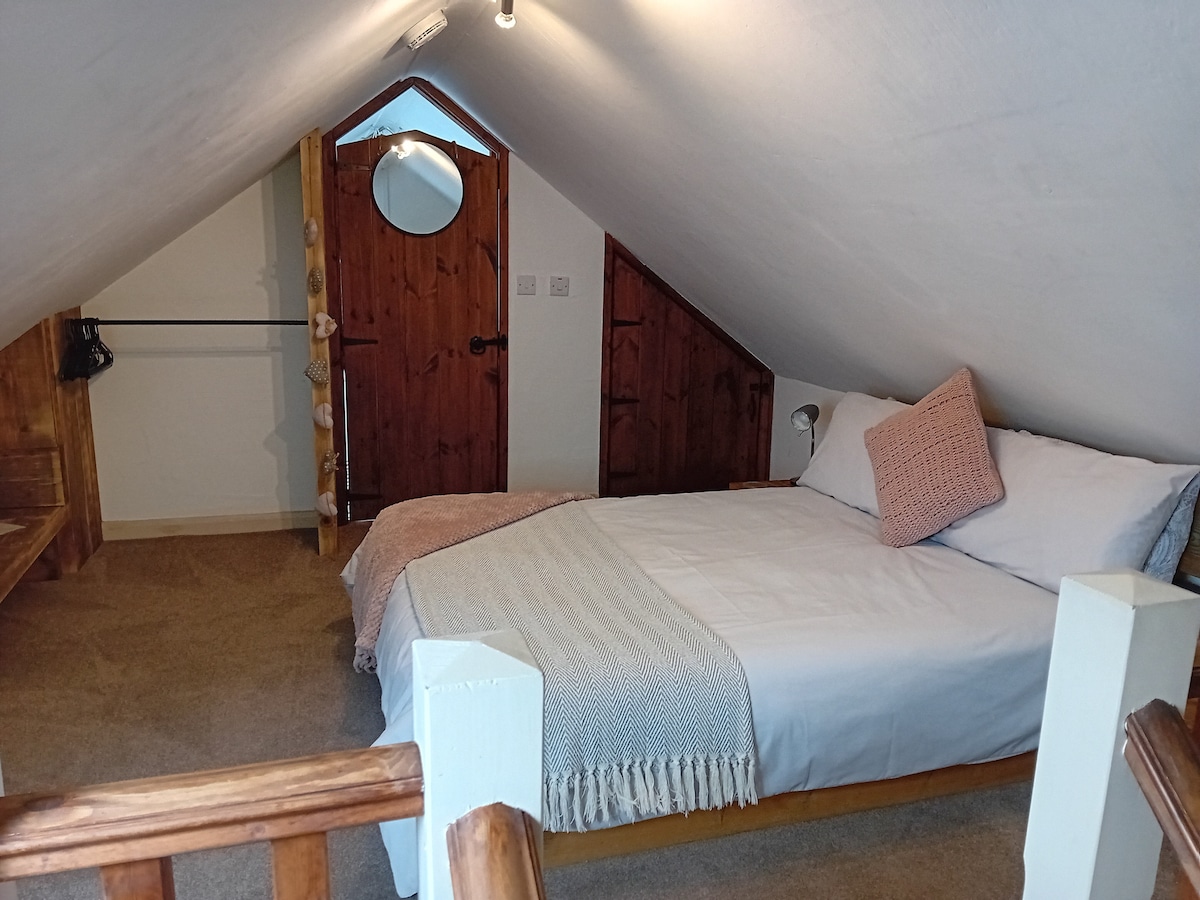Dobrodošli v Bryn Goleu. Romantično, nenavadno in udobno skednje se nahaja na 1 hektarju zemlje na 213 metrih nadmorske višine na gori Bwlch Mawr, od koder se odpira osupljiv pogled na morje in gore. Imate popolno zasebnost brez prometa. Mir in tišina, prostoživeče živali in čudoviti sprehodi pred vašimi vrati. Opazujte osupljive sončne zahode nad zalivom in sončne vzhode nad Snowdonom. Ime Bryn Goleu pomeni gorsko svetlobo. En majhen/srednje velik pes je dobrodošel, vendar nas obvestite in preverite pravila za pse.
