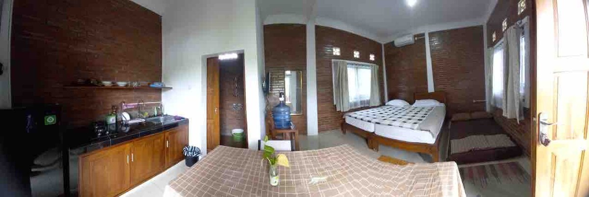 Vila za počitek, ki je na počitnicah precej polna 4 oseb. Ta vila se nahaja v 2. nadstropju s čudovitim razgledom na zeleno okolje. Objekti, ki jih dobite v tej vili, so 1 soba z dvoposteljno enoposteljno sobo, eno vzmetnico 120, klimatsko napravo, ogledala, omarice za shranjevanje, hladilnik, stropni ventilator, TV, galon, sušilnik za brisače, WI-FI , grelnik vode in hladilnik ter prostorno parkirišče
