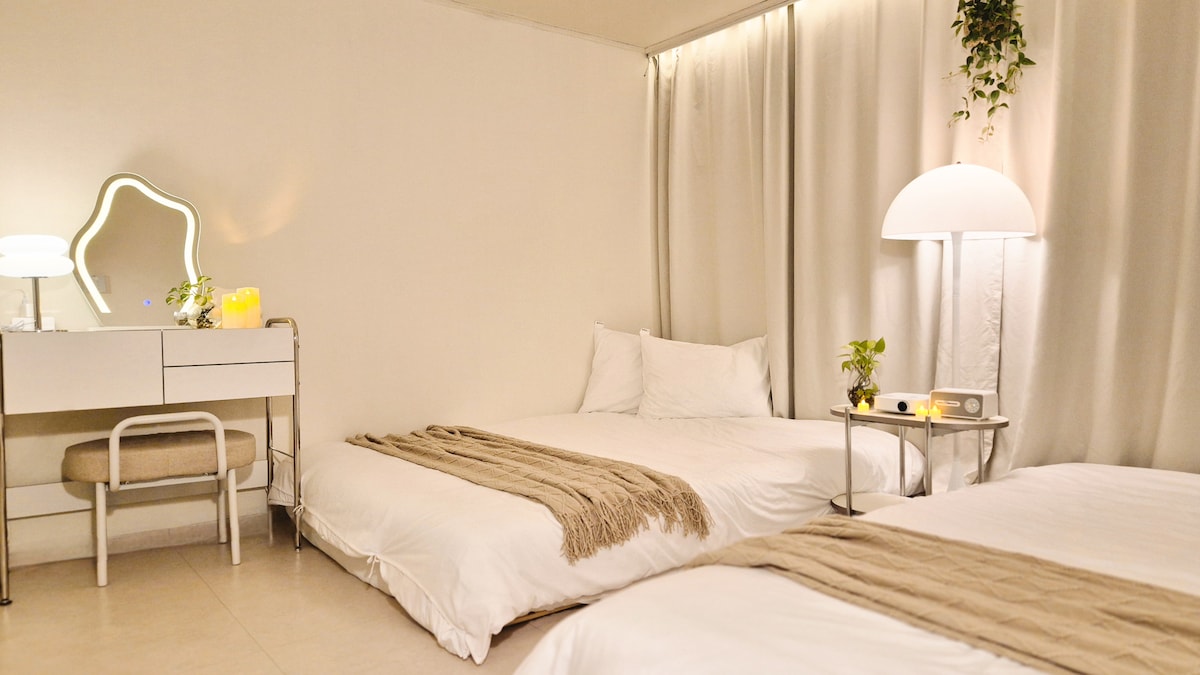 Pozdravljeni. To je prijetna nastanitev Jin, podobna umiku. To je enota 4. NaÅ”a nastanitev je licencirana nastanitev in se lahko udobno uporablja. š Sprejme do 4 osebe (2 zakonski postelji) Prijatelji, družina, pari, popotniki, ki potujejo sami. Upam, da boste imeli sreÄno in sproÅ”ÄujoÄe bivanje v moji hiÅ”i. Prihod IN odhod Prihod: 15:00 Äas odhoda: 12:00 ā Samostojni vstop - geslo bo poslano ob Äasu prihoda z elektronskim sistemom za zaklepanje vrat. Pred vhodnimi vrati nastanitve bomo roÄno nosili ā težko prtljago in prtljago!!! š * Prtljago in prtljago lahko pustite pred vhodom v prvem nadstropju nastanitve do 12. ure pred prihodom ter posnamete fotografijo in jo poÅ”ljete gostitelju. š Storitev shranjevanja ā prtljage Shranjevanje prtljage je mogoÄe po odhodu. Äe potrebujete storitev, nam to sporoÄite vsaj en dan prej:) Storitev rezervacije ā Cole Benn Opravljamo storitev rezervacije prevoza, da lahko udobno pridete do naÅ”e nastanitve z letaliÅ”Äa, zato nas vnaprej obvestite, Äe potrebujete storitev. š (Dodatno se zaraÄuna stroÅ”ek ÄiÅ”Äenja! š)