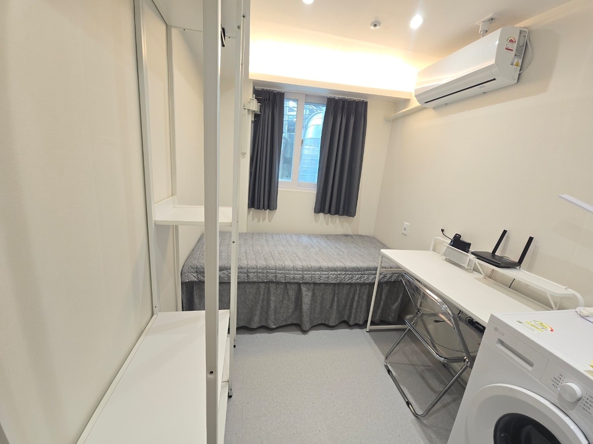 Na novo zgrajeno bivališče v 3 minutah od 2 postaj podzemne železnice *Recepcija, shramba za prtljago in salon za goste: B1F (na voljo je angleško in kitajsko govoreče osebje, postrežba zajtrka (plačljivo)) *namestitev za nekadilce. globa: 150.000 wonov. *Aparat za kavo in kapsula za dobrodošlico, bide , čistilnik pitne vode *Vse, kar potrebujete, tako kot doma. *2 gosta bosta uporabljala eno posteljo. Če vam je ljubše ločene postelje, pošljite zahtevo vnaprej. (plačano) *Za 3 ali več oseb bo raztegljiv kavč postavljen kot postelja.